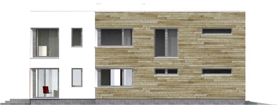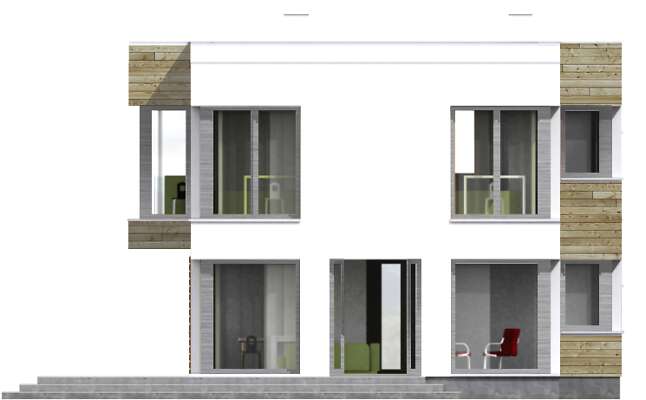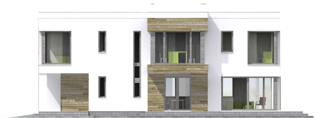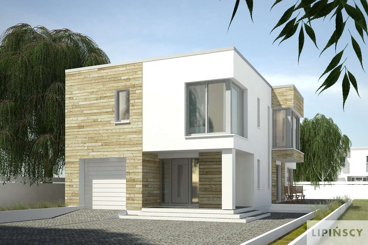 Nowoczesny dom energooszczędny, idealny na wąską działkę. Wspólna strefa dzienna na parterze, z dużym przeszklonym salonem z kominkiem, kuchnią i jadalnią sprzyja rodzinnym spotkaniom. Obok kuchni zaplanowano schowek, jest też wpisany w bryłę domu garaż na jedno auto oraz kotłownia i wc. Druga kondygnacja to cztery ustawne sypialnie, w tym duża sypialnia rodziców z własną łazienką i garderobą, komfortowa wspólna łazienka oraz kącik rekreacyjny lub miejsce do pracy. Nowoczesna bryła z dużymi przeszkleniami na pewno zwróci uwagę niejednego miłośnika prostych, ale efektownych rozwiązań.