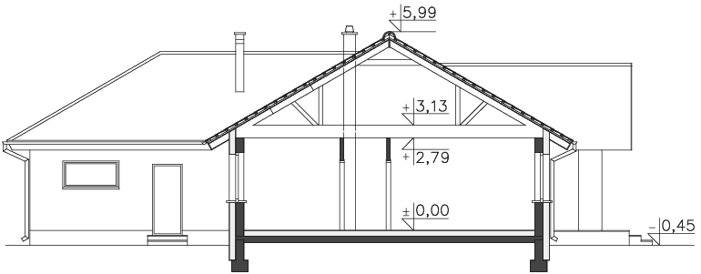 W projekcie zastosowano więźbę dachową w systemie MITEK. Plusem zastosowania takiej więźby, jest możliwość dokonywania zmian bezpośrednio przez producenta. A zatem, można zmienić kąt nachylenia dachu, aby wykorzystać poddasze na cele mieszkalne.