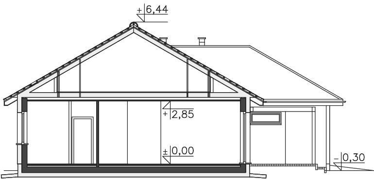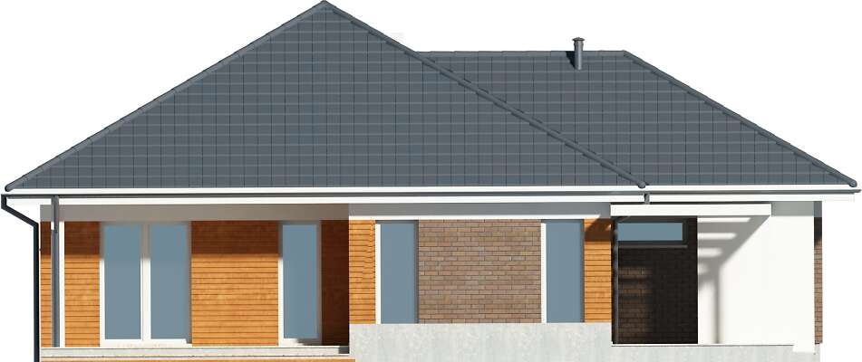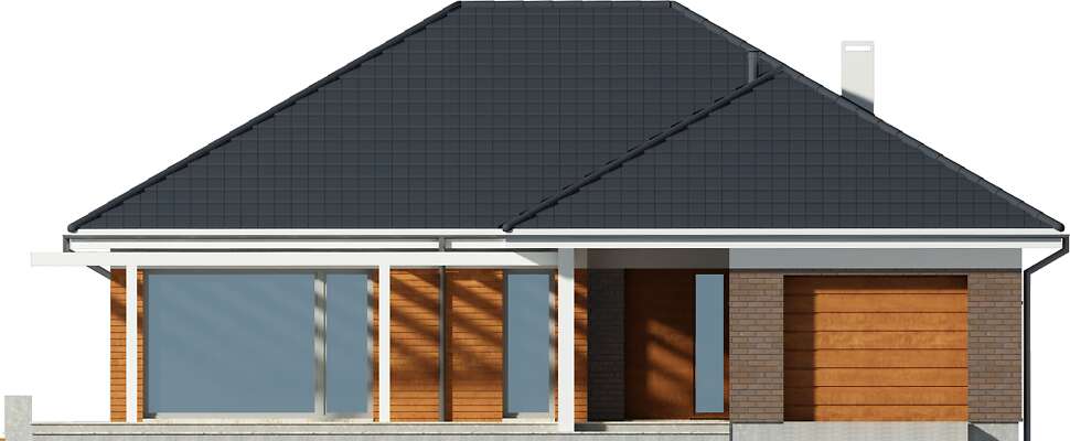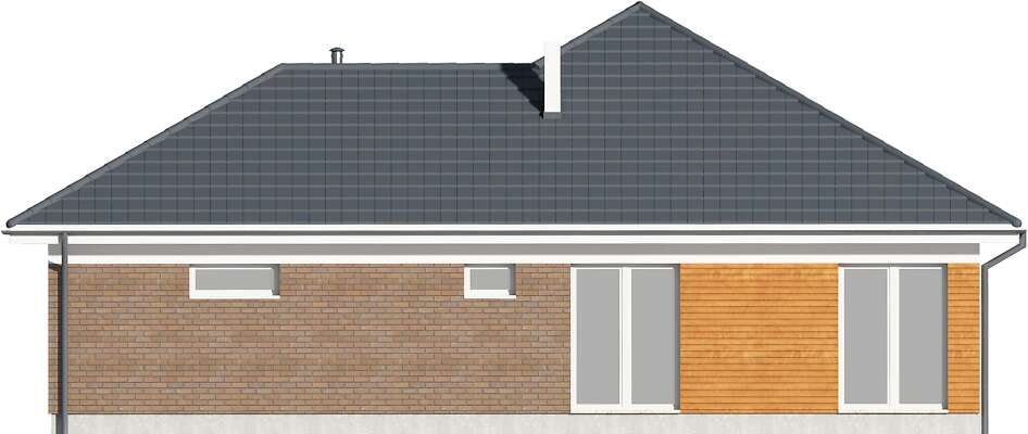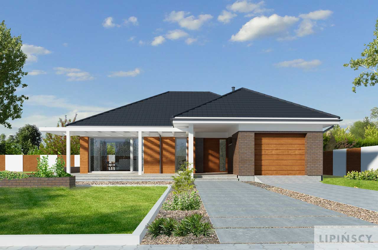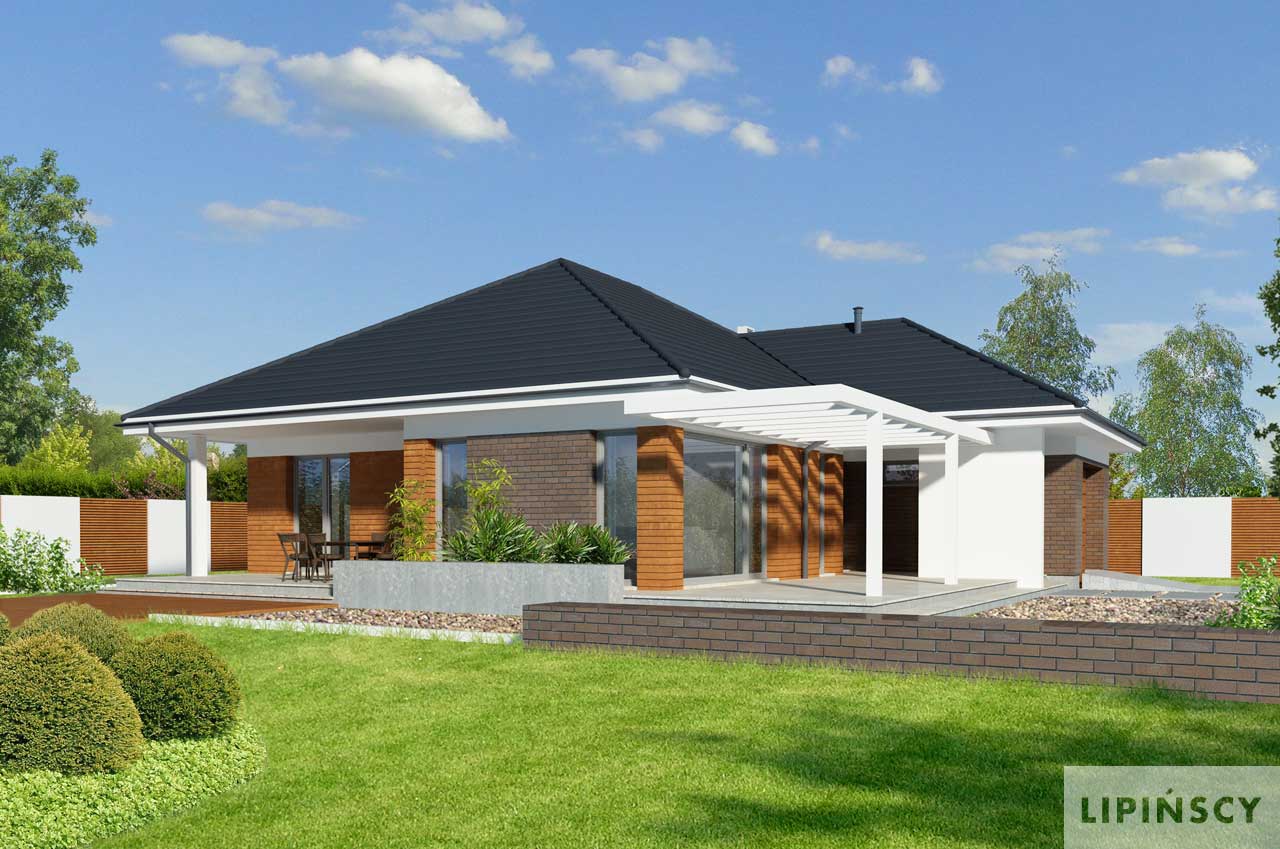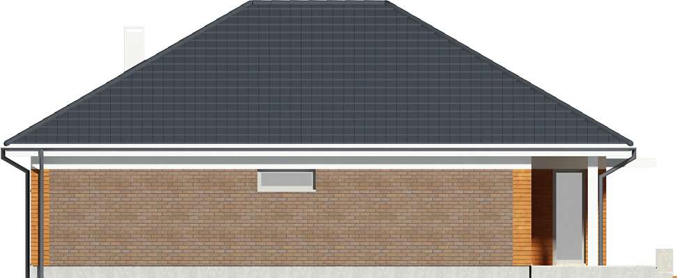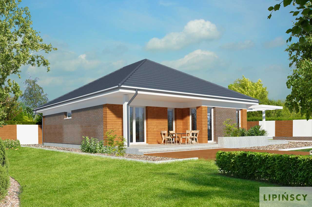 Wygodny dom parterowy, zaprojektowany w standardzie energooszczędnym, co gwarantuje niedrogą eksploatację. Usytuowanie salonu od strony frontowej sprawia, że dom z powodzeniem można zlokalizować na działce z wjazdem od południa. Otwarta na salon kuchnia to dobra propozycja dla osób lubiących razem spędzać czas, niezależnie od domowych obowiązków. Obok kuchni znajduje się podręczna spiżarnia, a obok wiatrołapu przewidziano niewielką toaletę. W domu zaprojektowano także trzy wygodne sypialnie i dużą, doświetloną naturalnym światłem łazienkę – pomieszczenia te stanowią strefę prywatną. W bryle domu znajduje się garaż na jedno auto, z przejściem do wnętrza budynku oraz z pomieszczeniem gospodarczym. W projekcie przewidziano ogrzewanie kotłem na gaz. Możliwa jest zmiana ogrzewania na pompę ciepła.