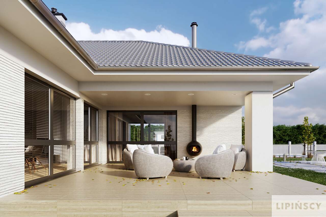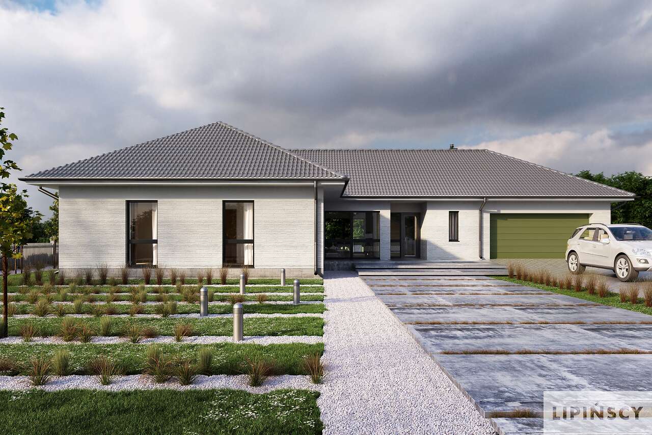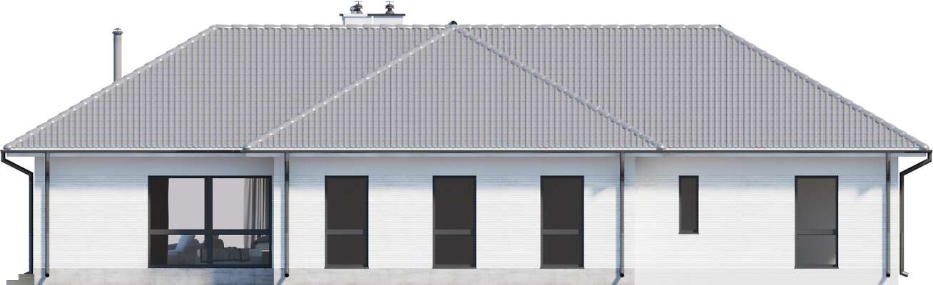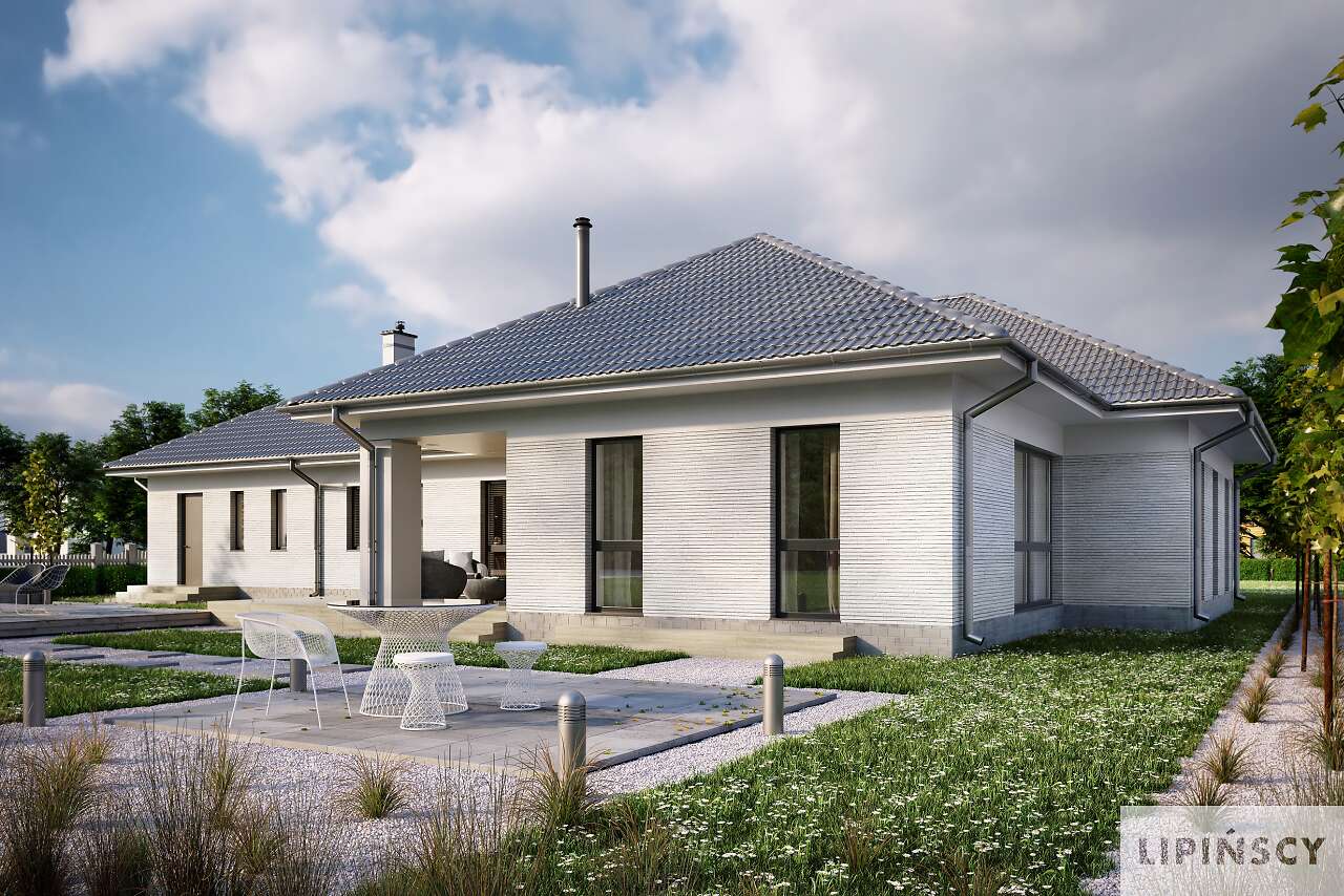 Andora to przestronny, komfortowy dom parterowy, zaprojektowany w standardzie energooszczędnym. Jest to doskonała propozycja dla większej rodziny – dzięki wyodrębnieniu aż sześciu sypialni, każdy z domowników może cieszyć się niezależnością. Wśród sypialni jedna posiada własną łazienkę i garderobę. Sercem domu jest duży, wygodny salon z jadalnią, obok którego znajduje się ustawna kuchnia. W nowoczesną bryłę budynku wkomponowano duży garaż, za którym znajduje się kotłownia oraz pomieszczenie gospodarcze. W projekcie przewidziano ogrzewanie kotłem na gaz. Możliwa jest zmiana ogrzewania na pompę ciepła.