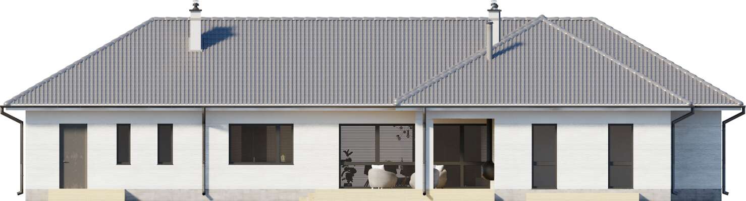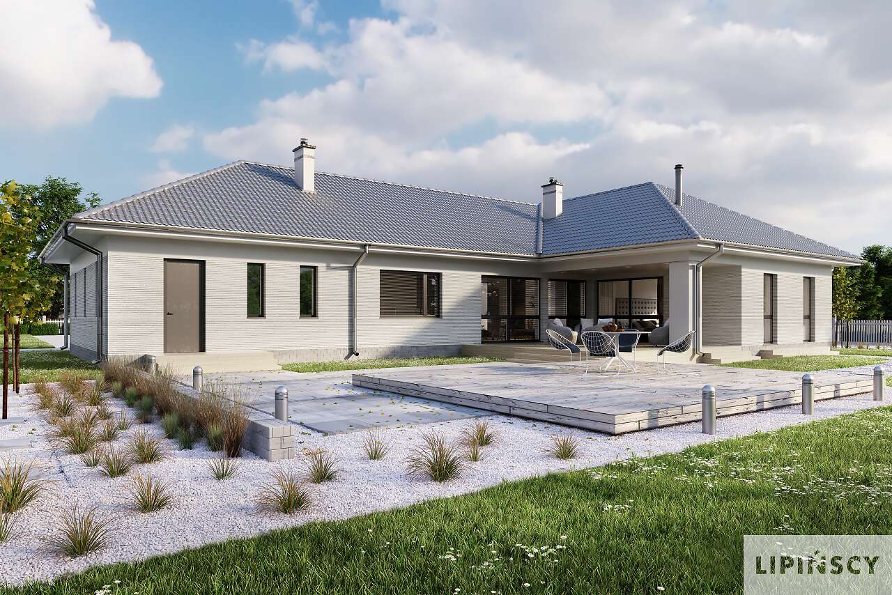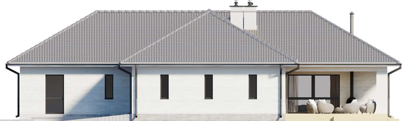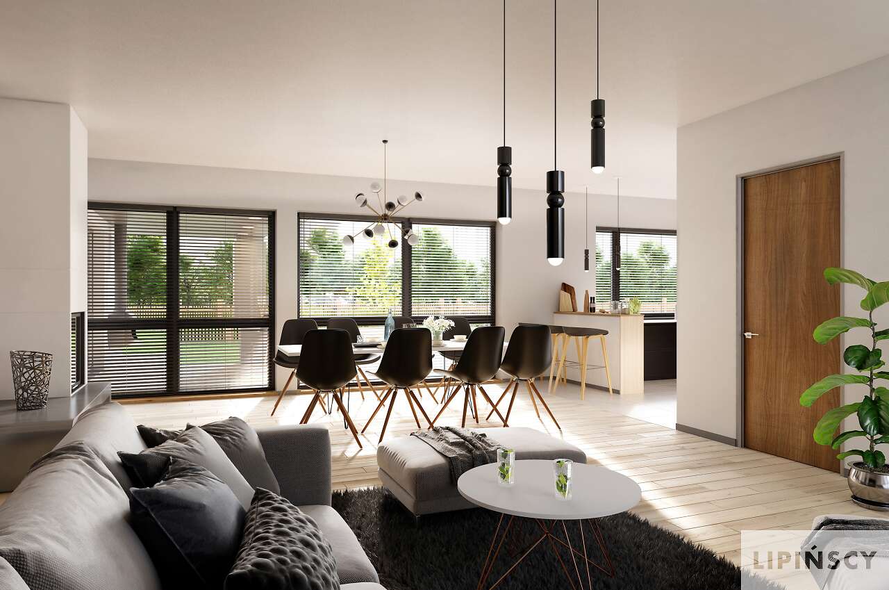 Andora to przestronny, komfortowy dom parterowy, zaprojektowany w standardzie energooszczędnym. Jest to doskonała propozycja dla większej rodziny – dzięki wyodrębnieniu aż sześciu sypialni, każdy z domowników może cieszyć się niezależnością. Wśród sypialni jedna posiada własną łazienkę i garderobę. Sercem domu jest duży, wygodny salon z jadalnią, obok którego znajduje się ustawna kuchnia. W nowoczesną bryłę budynku wkomponowano duży garaż, za którym znajduje się kotłownia oraz pomieszczenie gospodarcze. W projekcie przewidziano ogrzewanie kotłem na gaz. Możliwa jest zmiana ogrzewania na pompę ciepła.