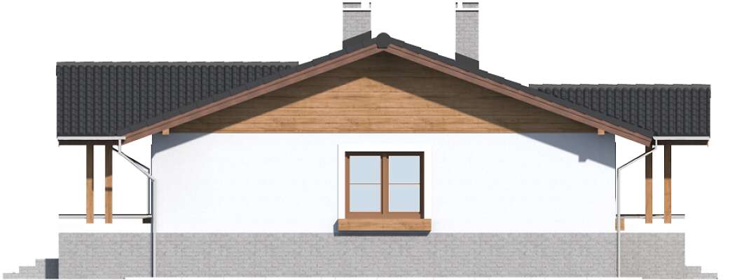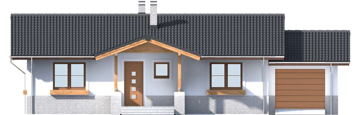 Prosty w budowie, wygodny dom parterowy z garażem. Mieszkańcy mają do dyspozycji funkcjonalną kuchnię, obszerny salon z miejscem na stół – pomieszczenia te stanowią część dzienną, wspólną. W części prywatnej wydzielono trzy sypialnię oraz wygodną łazienkę z wanną i prysznicem. Do dyspozycji domowników jest także dodatkowa toaleta. Dom ogrzewany jest gazem, kocił znajduje się w pomieszczeniu gospodarczym, przewidzianym także jako pralnia.