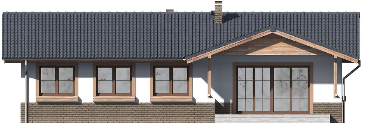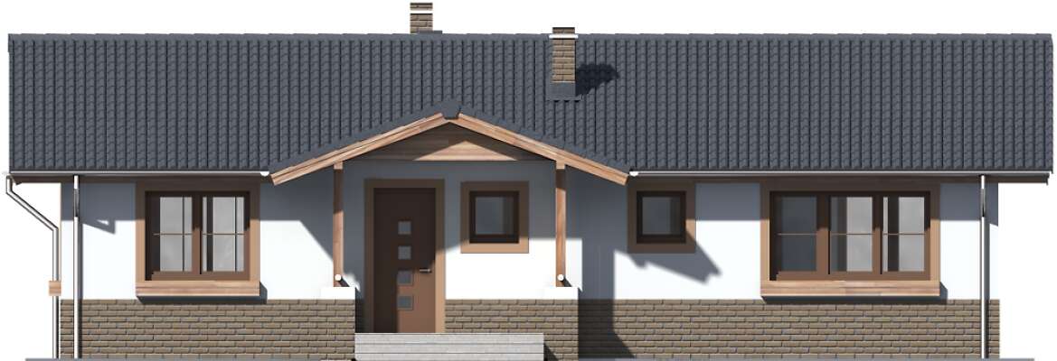 Niedrogi zarówno w budowie, jak i w eksploatacji parterowy dom Aspen IV, który posiada 4 sypialnie, dzięki czemu stanowi doskonałą i wygodną propozycję dla 5 osobowej rodziny. Przemyślane i funkcjonalne wnętrze podzielone zostało na strefę wspólną z kuchnią i salonem z kącikiem jadalnym oraz na strefę prywatną. Do dyspozycji mieszkańców jest także duża, doświetlona oknem łazienka, osobna toaleta i przydatne pomieszczenie gospodarcze. Częściowo zadaszony taras stanowi doskonałe uzupełnienie domu i ucieszy tych domowników, którzy marzą o porannej kawie na świeżym powietrzu.
