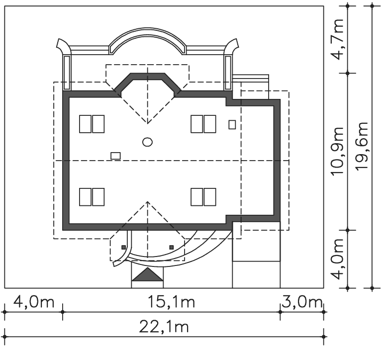 | Min. szerokość działki | 22,10m x 19,60m |