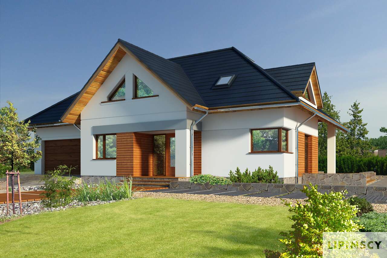 Kolejna wersja popularnego projektu Avalon, tym razem z garażem dwustanowiskowym i dużą kotłownią za nim oraz z przeniesionym kominkiem. Do dyspozycji mieszkańców jest funkcjonalna kuchnia, płynnie przechodząca w część jadalną i salon, wygodna sypialnia z własną łazienką oraz dodatkowa toaleta. Na poddaszu zaplanowano dwie sypialnie, w tym jedną z niezależną łazienką, dwie garderoby, duży gabinet i wspólną, dużą łazienkę. Ozdobą i cechą charakterystyczną domu jest antresola, nadająca wnętrzu lekkości i przestrzenności. Harmonijna i elegancka bryła, z drewnianymi elementami elewacji zadowoli inwestorów, szukających niebanalnego i wygodnego projektu.