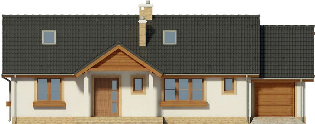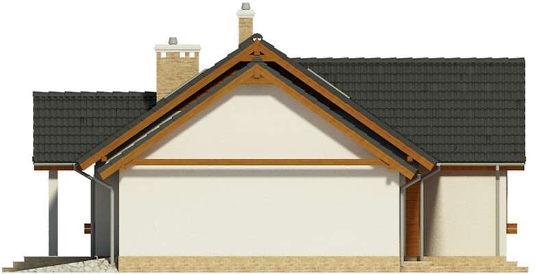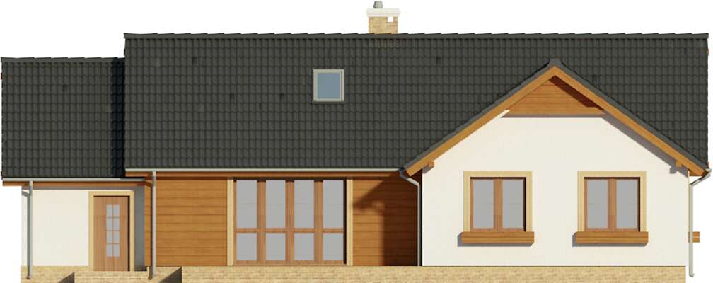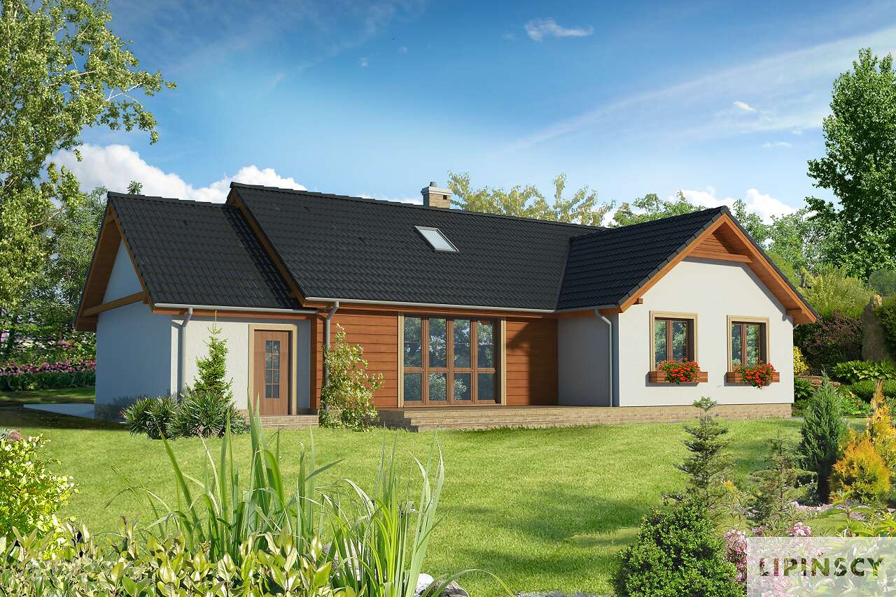 Wybudowałam taki dom i mieszkam w nim od 3 lat. Naniosłam parę zmian i jest wprost idealny. Poszerzyłam schody na poddasze do 110 cm i podniosłam kąt nachylenia dachu do 40 stopni. Przeprojektowałam konstrukcję więźby dachowej, wstawiłam podciągi i powierzchnie nieużytkowe stały się użytkowe. Powierzchnia użytkowa poddasza znacznie wzrosła i po wykończeniu wyszło śliczne niezależne i bardzo wygodne mieszkanie - salon 43m2, sypialnia 26 m2, kuchnia z jadalnią 35 m2, łazienka 16 m2 i przedpokój 16 m2. Wstawiłam okna Fakro pionowo łączone kołnierzem po 2 i 4 sztuki od podłogi do sufitu. Po prostu bomba! Na dole obok kuchni zrobiłam pralnię a drzwi wstawiłam z korytarza przy kuchni. Sypialnia jest z garderobą pod schodami. Wystarczyło przesunąć ściankę działową. To naprawdę fantastyczne rozwiązanie. Komórkę podzieliłam na połowę i wstawiłam do każdej z nich drzwi od strony garażu. w ten sposób powstało pomieszczenie, które zastępuje spiżarkę. Garaż poszerzyłam do 4,5 m. Kotłownia C.O. jest w pomieszczeniu gospodarczym za garażem. Kotłownia ze zwykłym piecem co i buforem 1000 litrów - polecam! Jest to niesamowicie wygodne i oszczędne, bo palę w piecu do oporu kiedy jestem w domu i nie ma możliwości przegrzania pieca, a jak mnie nie ma lub w nocy to ogrzewanie zasila bufor. Roczny koszt ogrzewania domu i wody nie przekracza 3.000 zł. zamiast tradycyjnej elewacji jest drewno - 18 x 4 cm gruba deska i ręcznie ciosane filary. Nie ma osoby która by nie zwróciła uwagi na ten dom. Jest prosty, ale inny niż wszystkie.