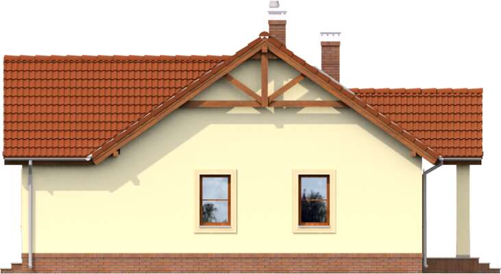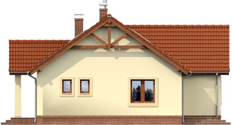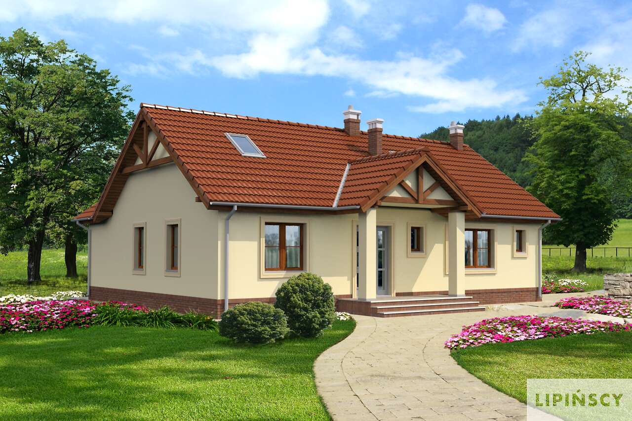 Niewielki, doskonale rozplanowany dom dla 4-5 osobowej rodziny, z opcją adaptacji około 40m² poddasza. Schody na strych przewidziano w klatce schodowej, co daje możliwość niezależnego użytkowania góry jako np. pracowni. Duży salon z aneksem kuchennym, kuchnia ze spiżarnią, i wc to wygodna część wspólna, 3 sypialnie z dużą łazienką to wyraźnie wydzielona strefa prywatna.