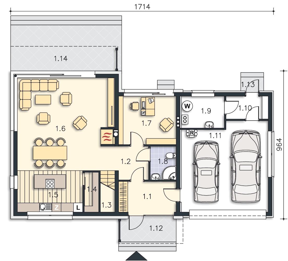Świetne rozmieszczenie pomieszczeń, bardzo funkcjonalne. Żona zachwycona jest projektem tarasu.