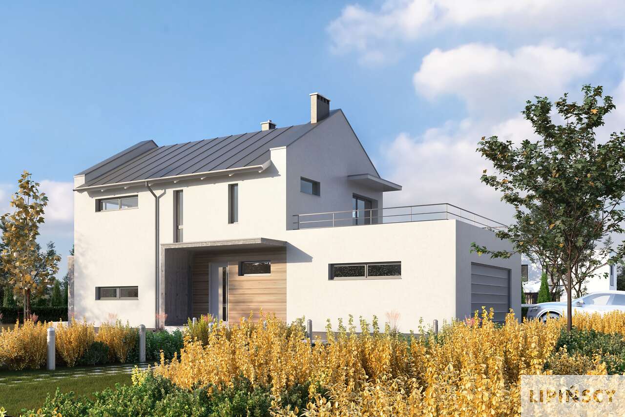 Szukasz funkcjonalnego domu piętrowego o nowoczesnej bryle, ale z dachem dwuspadowym? Zwróć uwagę na kolejnego Belfasta w naszej kolekcji, który dzięki usytuowanemu od frontu garażowi można wybudować nawet na wąskiej działce. Obszerny, doświetlony dużymi przeszkleniami salon z kominkiem otwiera się na ogród, a zlokalizowana obok kuchnia sprzyja wspólnemu gotowaniu. Dzięki osobnemu pokojowi na parterze zapewnisz swoim gościom wygodny nocleg, a trzy sypialnie na piętrze oraz wygodna duża łazienka pozwalają odizolować część wspólną od prywatnej.