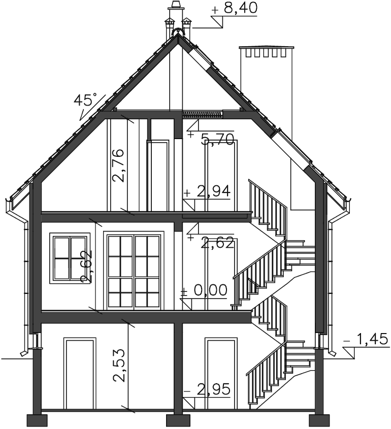 | Kąt nachylenia dachu | 45° |
