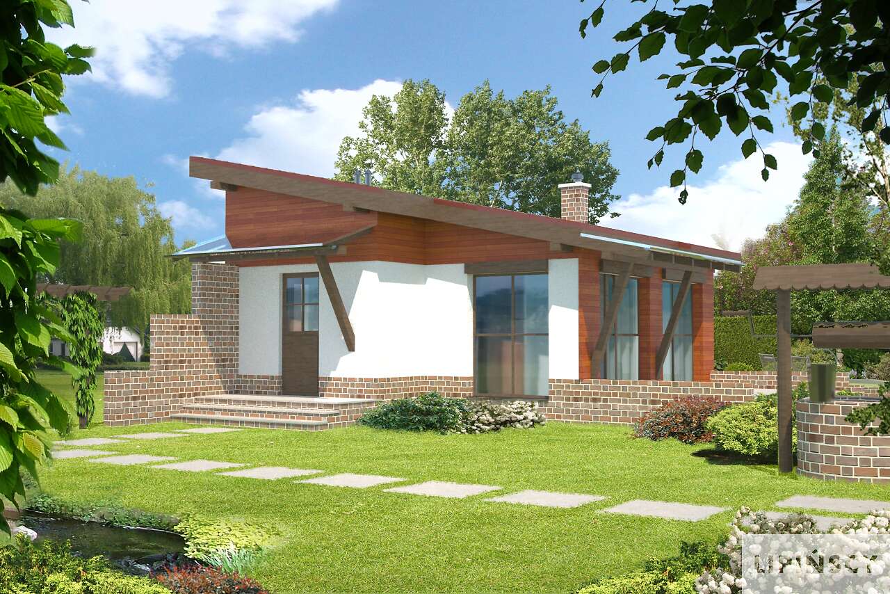 Z małych domów jest rewelacyjny, duże przeszklone powierzchnie. Ładny taras. Funkcjonalne i wystarczające metrażowo wnętrze dla 2 osób, rozsądne koszty wykonania.