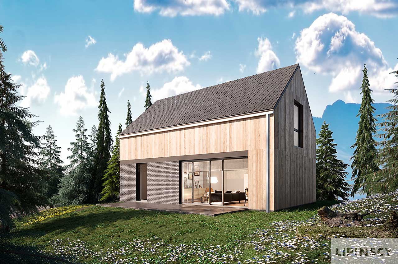 Projekt Bolzano to niewielki dom z poddaszem w stylu nowoczesnej mini stodoły, który wybudujesz na zgłoszenie. Powierzchnia zabudowy do 70 m kw. pozwala na dwóch kondygnacjach zaplanować całkiem wygodne wnętrze. Energooszczędne rozwiązania i kompaktowy charakter pozwolą na oszczędności, nie ograniczając funkcjonalności pomieszczeń. Otwarta przestrzeń dzienna doświetlona szerokim wyjściem na taras, trzy prywatne pokoje, dwie łazienki, dwie garderoby i pomieszczenie gospodarcze to jest to, czego potrzebujesz aby komfortowo mieszkać na optymalnie dobranej powierzchni. W projekcie przewidziano ogrzewanie pompą ciepła.