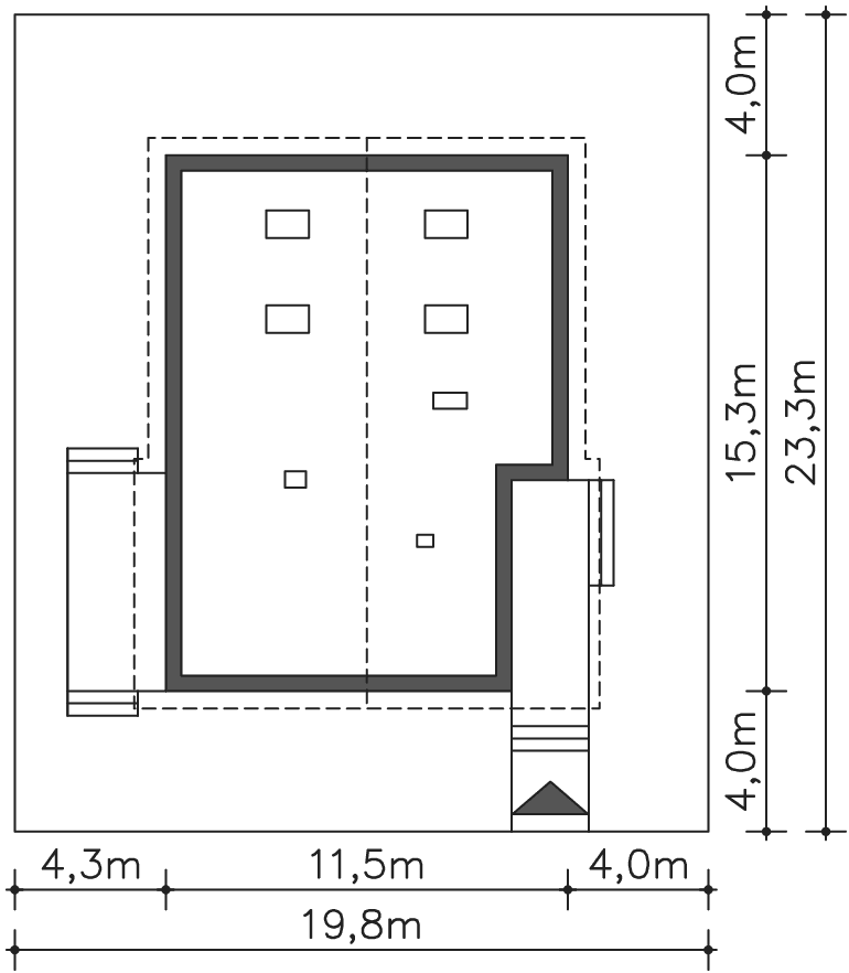 | Min. szerokość działki | 19,80m x 23,30m |