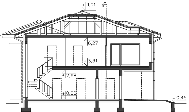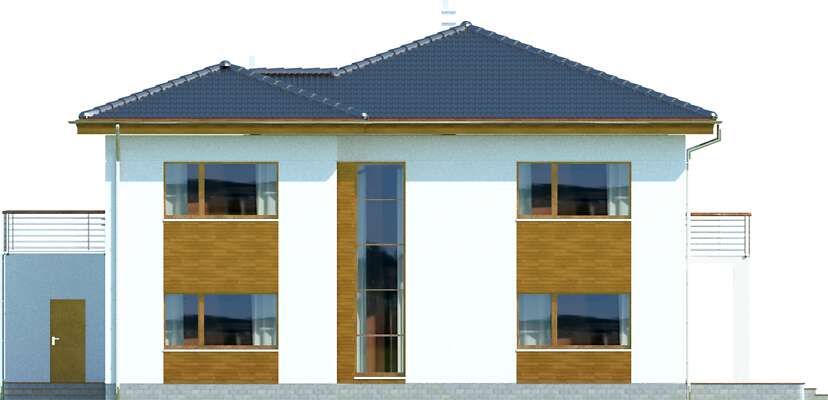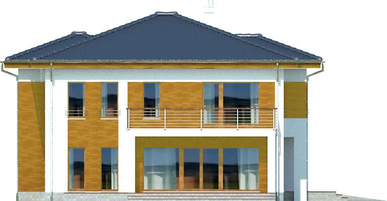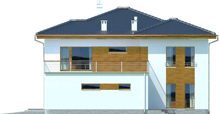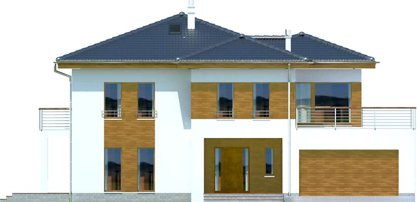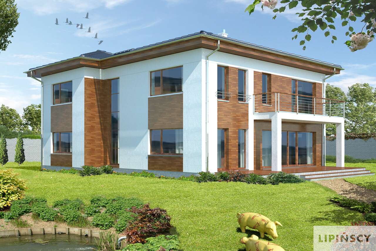 Piękna willa, przewidziana jako dom energooszczędny, doskonała na większe działki podmiejskie z wjazdem od południa. Obszerny parter z salonem z kominkiem i kuchnią z wyspą, doświetlony został dużymi oknami tarasowymi, dzięki którym ogród jest na wyciągnięcie ręki. Gabinet, ulokowany w tylnej części domu, pozwala na spokojną pracę. Jest tu też łazienka, spiżarnia, garderoba, pomieszczenia co i gospodarcze oraz dwustanowiskowy garaż. Poddasze to cztery sypialnie, w tym jedna z własną łazienką i garderobą, wspólna łazienka i piękny taras.