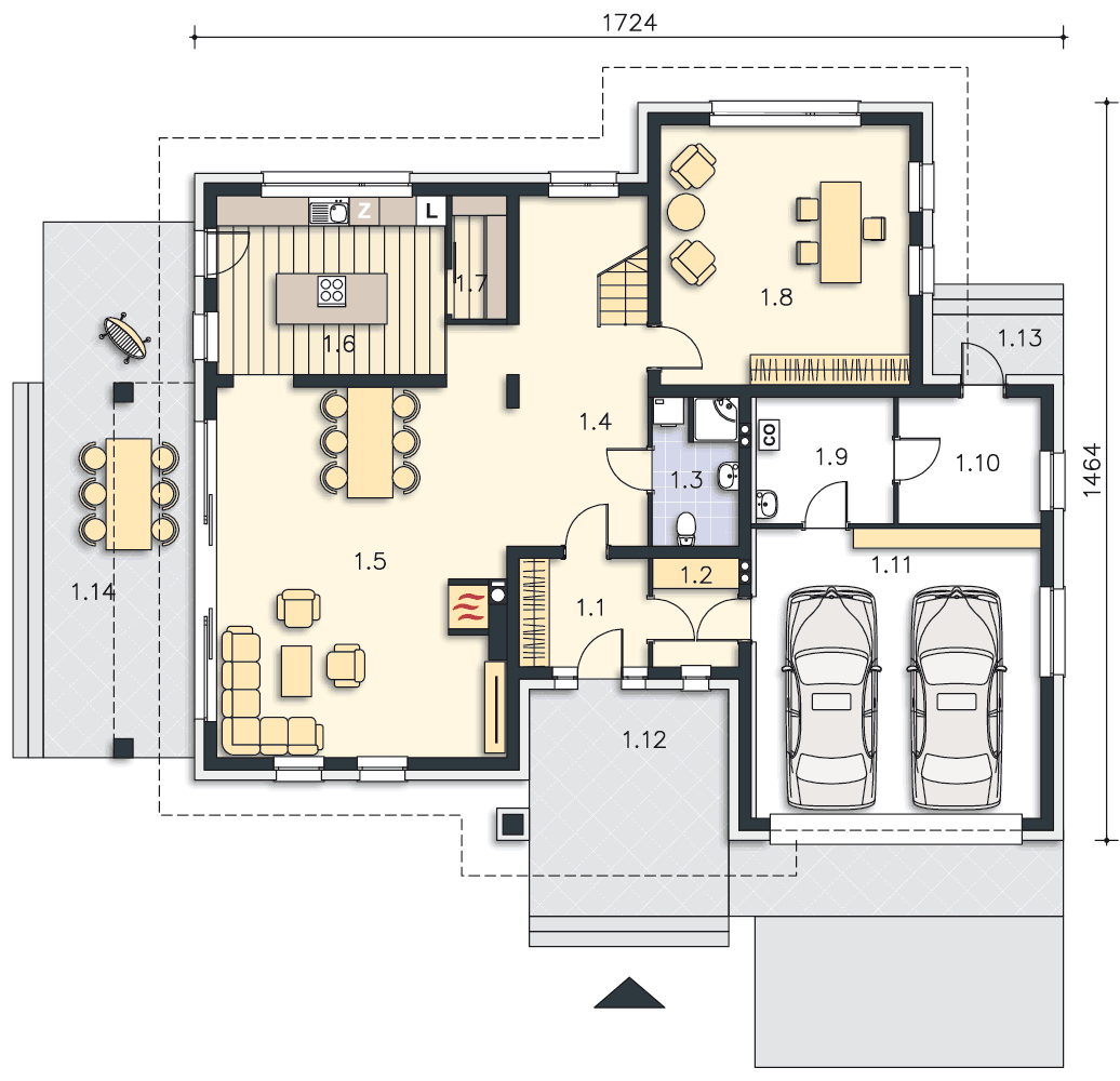 | 1.5 | Salon, jadalnia | 42,49m2 |