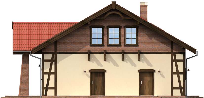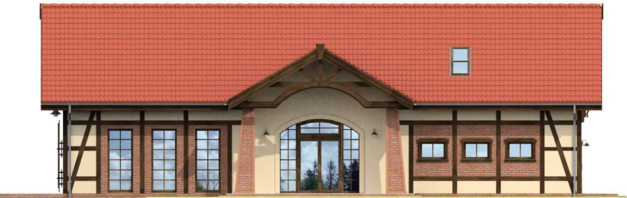 Projekt restauracji w stylu rustykalnym. Budynek jest energooszczędny, a dzięki prostej bryle również ekonomiczny w realizacji. Na parterze znajduje się przestronna i jasna sala główna oraz znakomicie rozplanowane zaplecze, w którego skład wchodzi kuchnia, niezbędne pomieszczenia techniczne oraz sanitariaty. Na piętrze zaplanowano pomieszczenia biurowe oraz pracownicze.