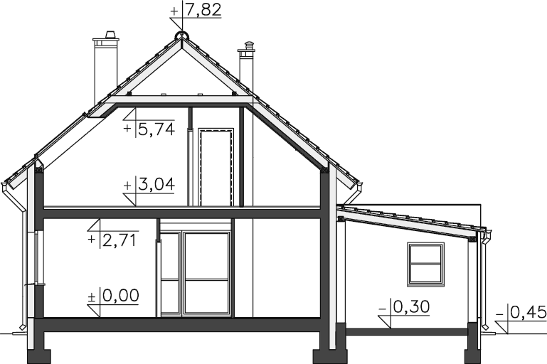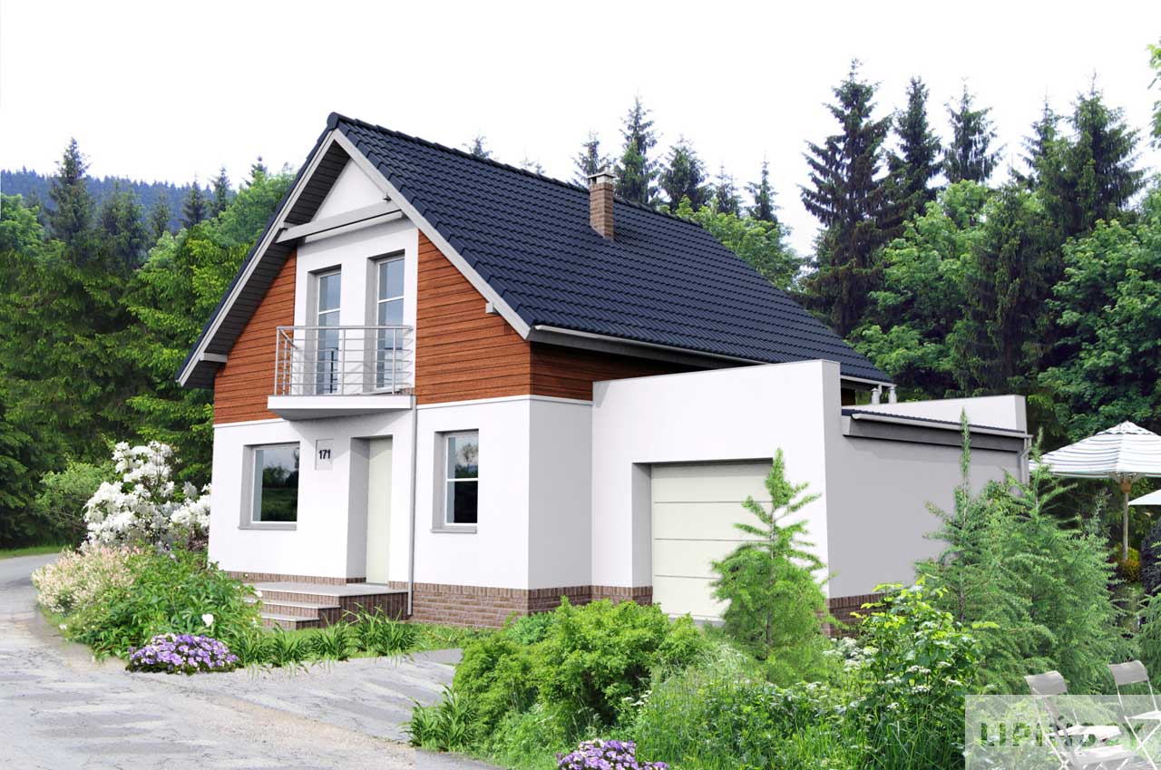 Dom energooszczędny, zaprojektowany z myślą o trzy-, czteroosobowej rodzinie, dla której na poddaszu przewidziano dwie wygodne sypialnie i bardzo dużą łazienkę. Na parterze natomiast znajduje się strefa dzienna z dużym pokojem, który jest bardzo przeszklony, co dodatkowo korzystnie wpływa na energooszczędność tego domu. Atrakcją jest także antresola przy schodach na poddasze, która razem z rekuperacją znacznie poprawia obieg ciepłego powietrza w domu.