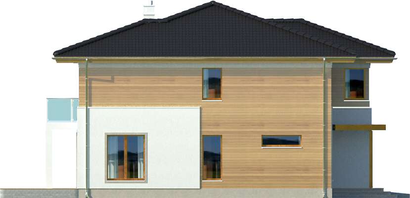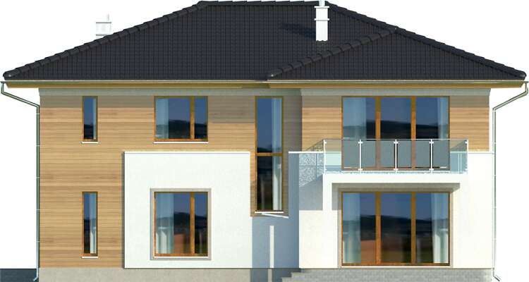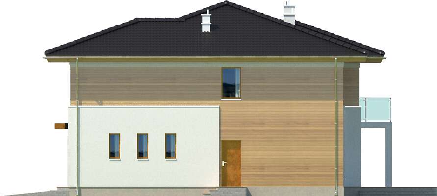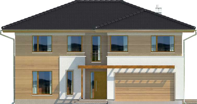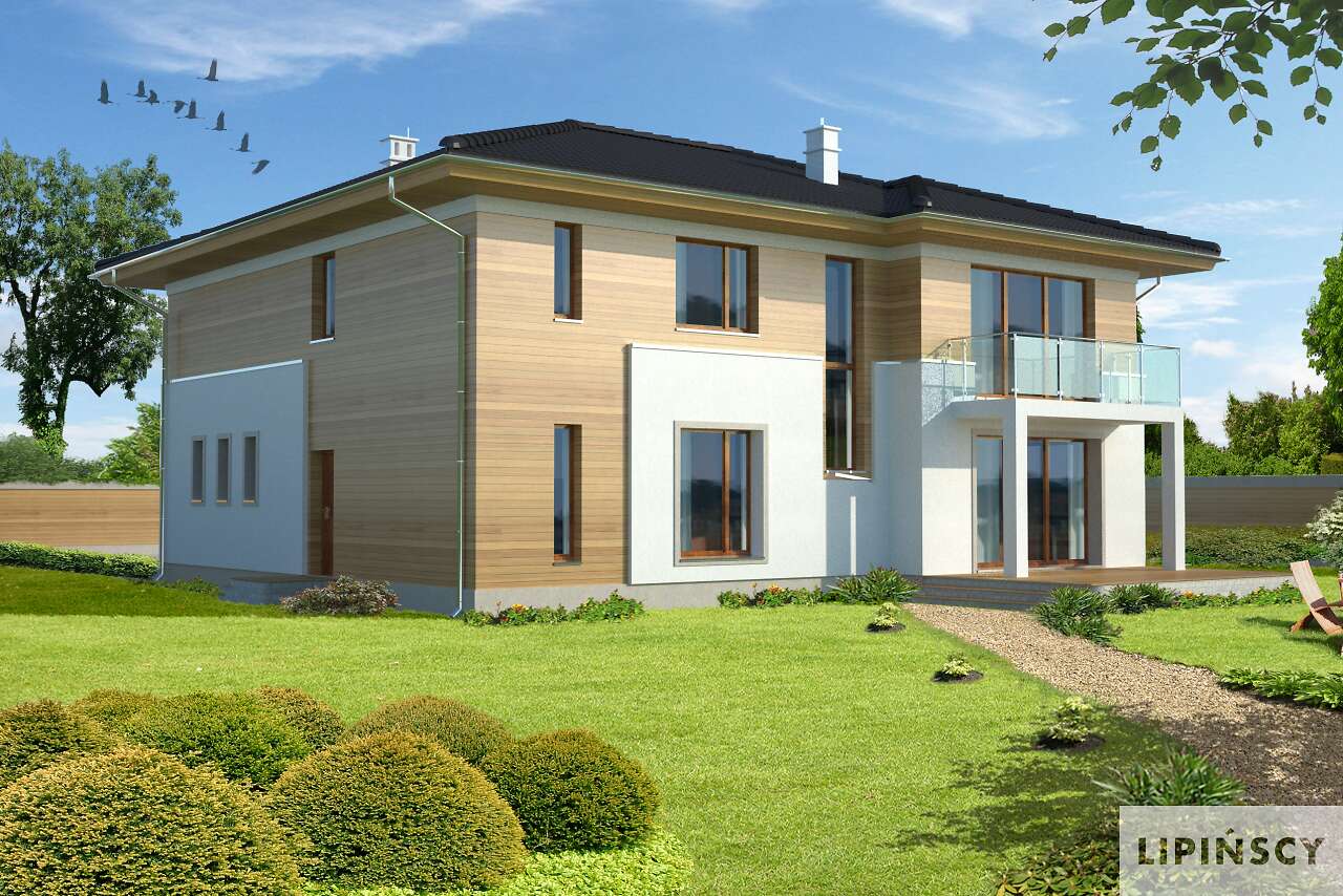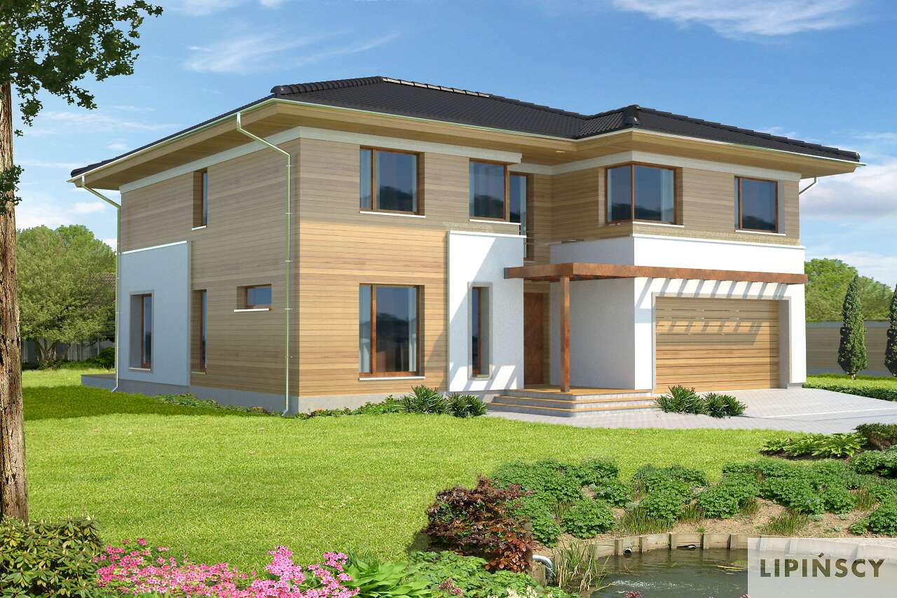 Przestronna podmiejska rezydencja, doskonała dla dużej rodziny ceniącej wygodę. Energooszczędny standard domu gwarantuje zarówno ekonomiczną eksploatację, jak i komfort mieszkania. Parter przeznaczono na duży salon z wyjściem na taras, kuchnię, w której zmieści się wyspa, spiżarnię, dodatkowy pokój i łazienkę. Na piętrze znajdują się cztery sypialnie, dwie mają garderoby, a jedna zarówno garderobę jak i osobną łazienkę. W bryłę domu wkomponowano dwustanowiskowy garaż, do którego można wejść z domu, a za nim zlokalizowano kotłownię z wyjściem na zewnątrz.