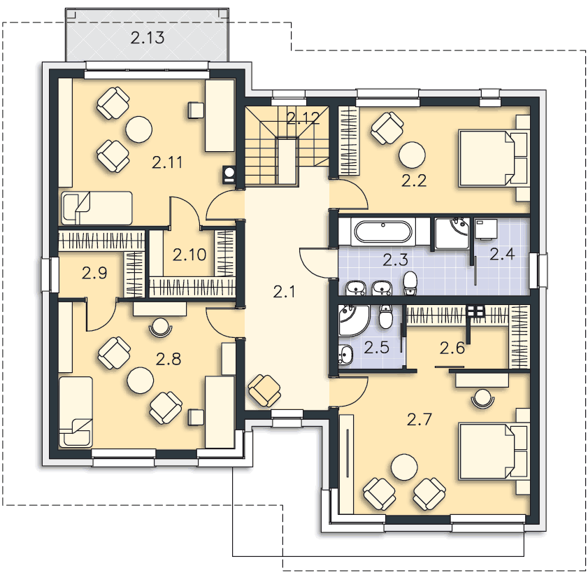 Mnie w tym projekcie dziwi tylko to, że nie ma ani jednej łazienki z oknem. Są za to okna w garderobach i spiżarni! Ale to można poprzestawiać. No i balkon oczywiście do kosza: to taki blokowy nawyk, a potem się okazuje, że po walce z prawidłową izolacją i tak się na balkon nie wychodzi, bo jest taras i ogród.