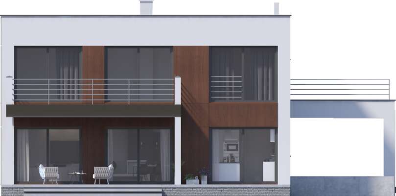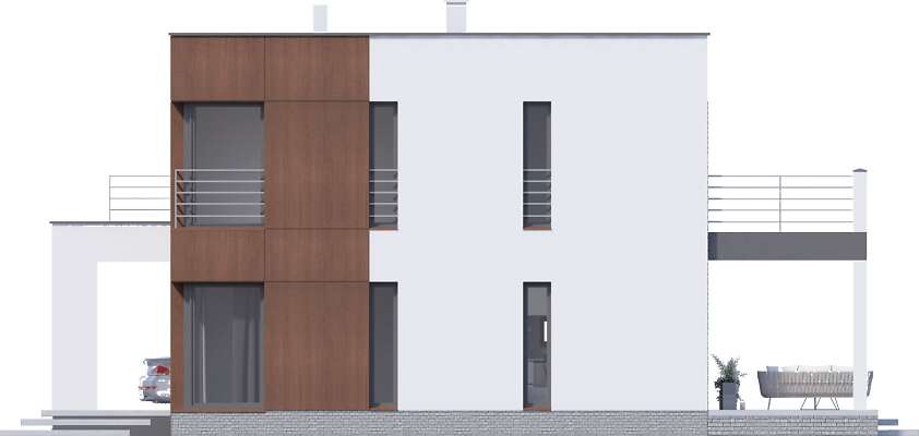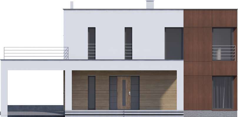 Projekt domu Carrara V to energooszczędny dom piętrowy z piwnicą i miejscem na auto pod dostawioną do budynku nowoczesną wiatą. Duże południowe przeszklenia na obu kondygnacjach są cechą szczególną tego projektu. Duże jasne wnętrza zarówno strefy dziennej na parterze jak i prywatnej na pietrze wpływają na poczucie komfortu, a uzupełnione o sporo pomieszczeń pomocniczych zapewnią wygodę mieszkańcom. W projekcie przewidziano ogrzewanie kotłem na gaz. Możliwa jest zmiana ogrzewania na pompę ciepła.