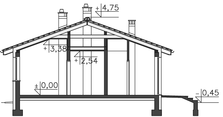 SkomentujStrop w projekcie jest drewniany i jest elementem więźby dachowej, jest jednak podwyższony, także nie można wykorzystać tu strychu.