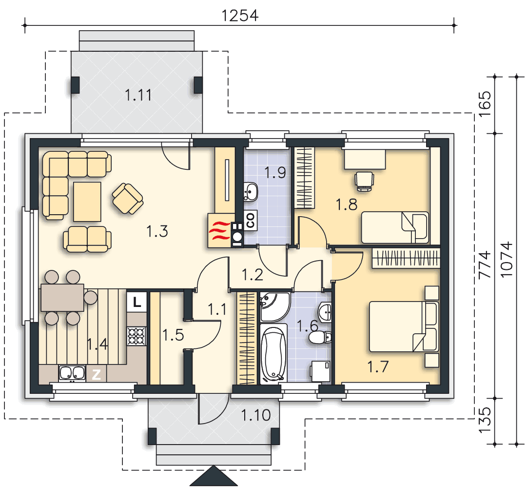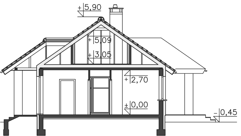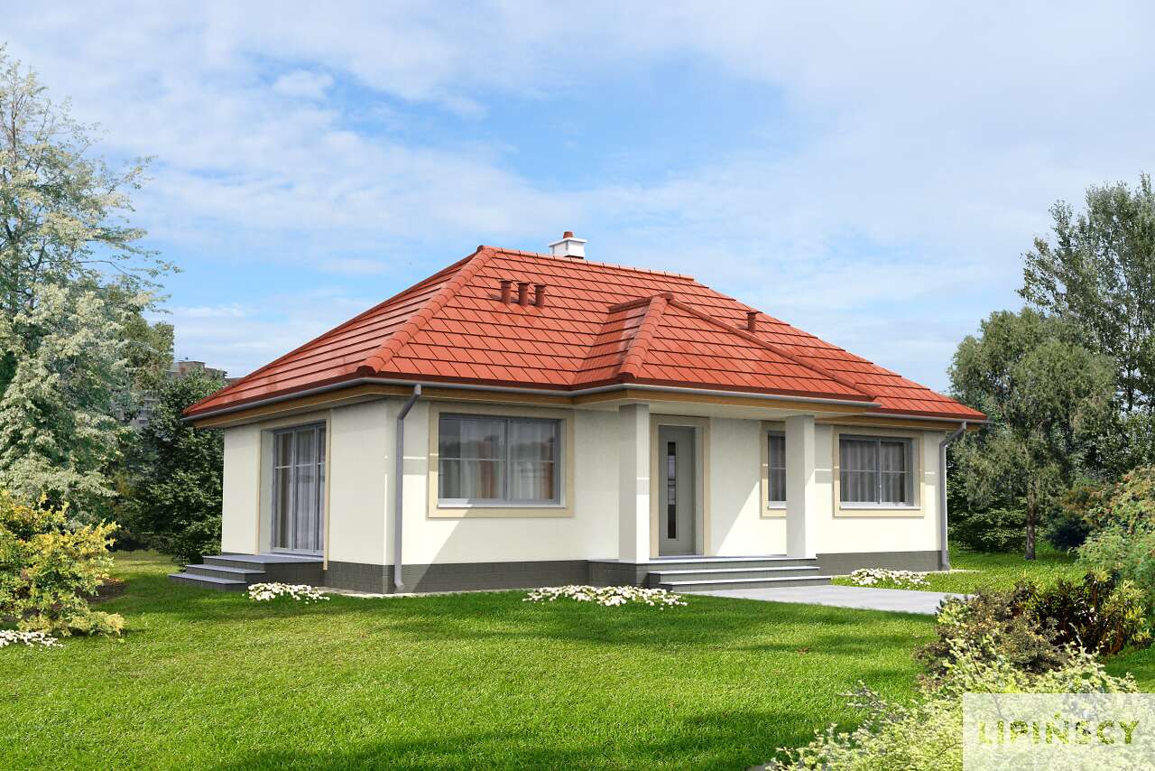 Piękny klasyczny domek z czterospadowym dachem o kącie nachylenia 35 stopni. Przestrzeń dzienna do duży salon z otwartą kuchnią, idealny do przygotowywania wspólnych posiłków i rodzinnego spędzania czasu. Część nocna to dwie przytulne sypialnie oraz łazienka z wanną i prysznicem. Jest tu również wygodna spiżarnia oraz pomieszczenie gospodarcze. Do wykorzystania jest również przestrzeń strychu.