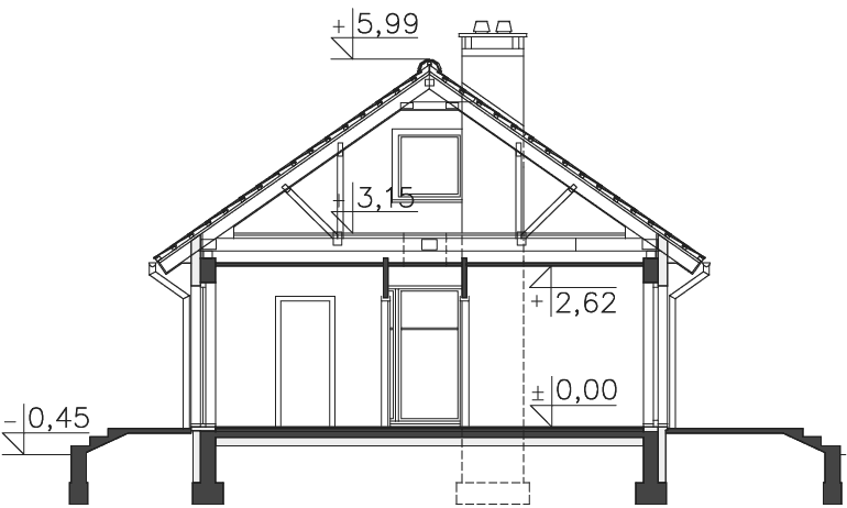Projekt zawiera wiązary z sufitem podwieszanym z płyt gipsowo-włóknowych. Murłata leży bezpośrednio na wieńcu.