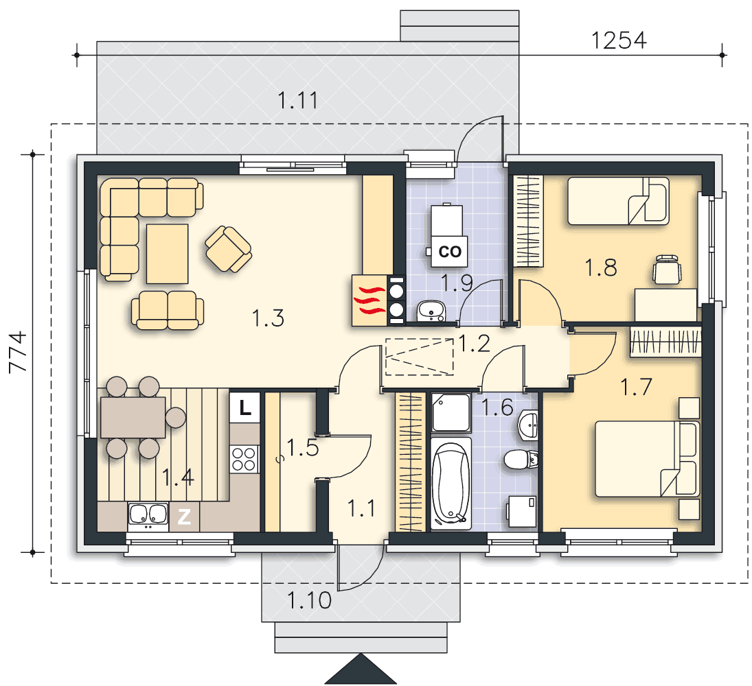 Ta śliczna parterówka z poddaszem nieużytkowym to doskonały przykład tradycji w nowoczesnym wydaniu. Wygodna strefa sypialniana oddzielona jest od części dziennej, w której znajduje się przestronny salon połączony z funkcjonalną kuchnią. Spędzisz tam piękne chwile przy kominku, rozkoszując się widokiem wpadającym do domu przez przeszklone wyjście na taras. Cały dom jest doskonale doświetlony, tak aby przez długi czas można było cieszyć się światłem dziennym. Dodatkowo znajduje się tu osobne pomieszczenie z kotłownią na paliwo stałe.