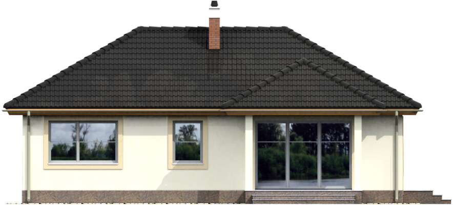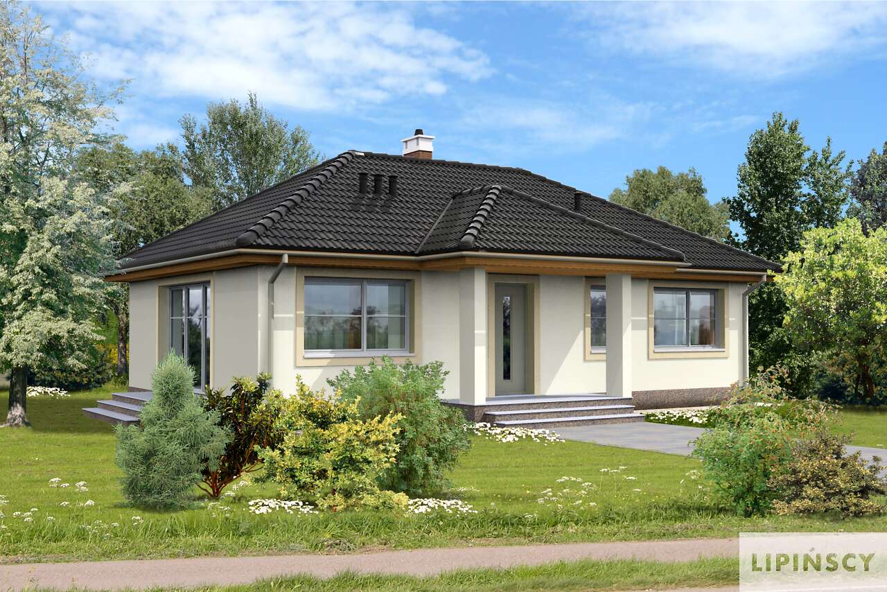 Mały dom parterowy, w którym wygodnie zamieszka niewielka rodzina. Otwarcie kuchni na salon dodało wnętrzu przestrzenności. Oprócz tych pomieszczeń, na parterze znalazło się także miejsce na dwie wygodne sypialnie, dużą łazienkę, pomieszczenie gospodarcze oraz pomieszczenie c.o. Dzięki dużym oknom w salonie, dom jest dobrze doświetlony. Z salonu można wyjść na taras, gdzie w pogodne dni miło jest wypić poranną kawę, mając ogród na wyciągnięcie ręki.