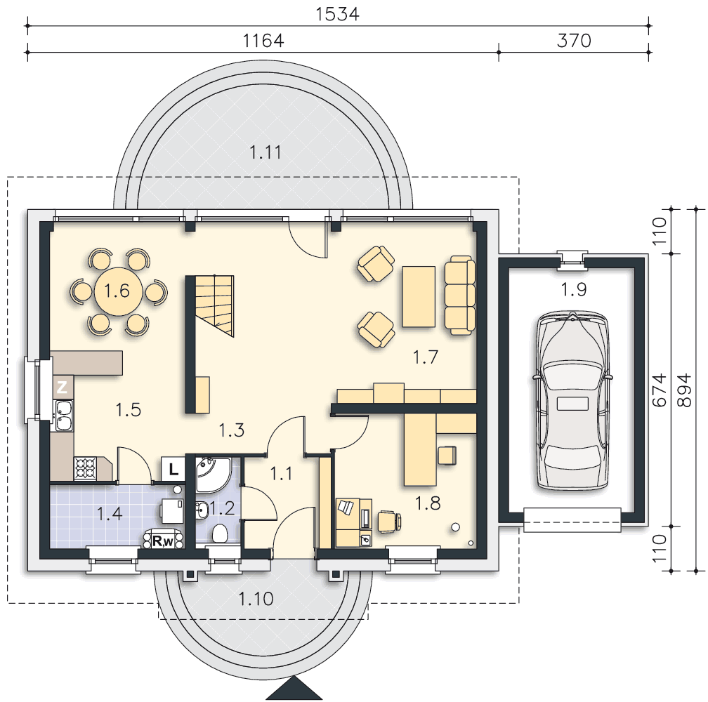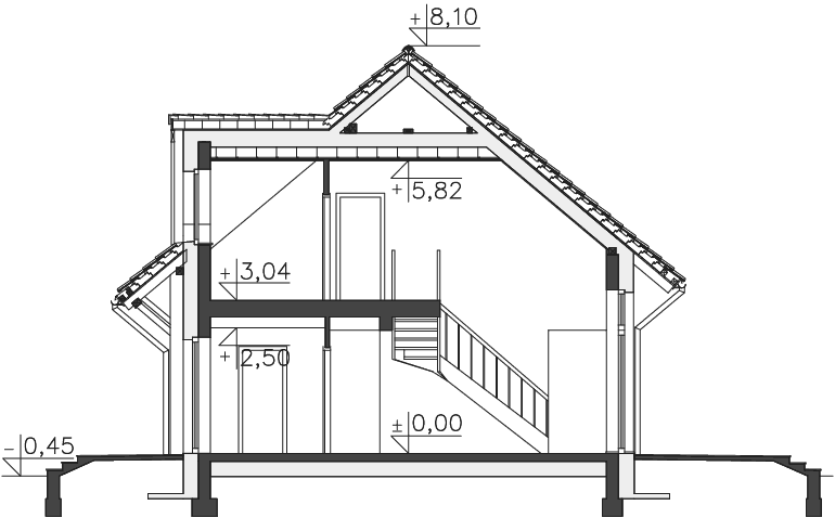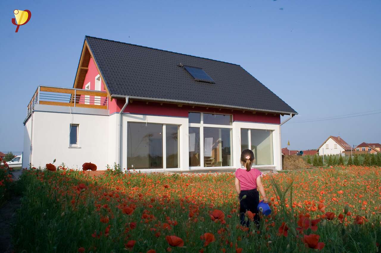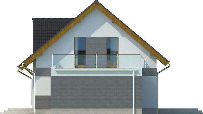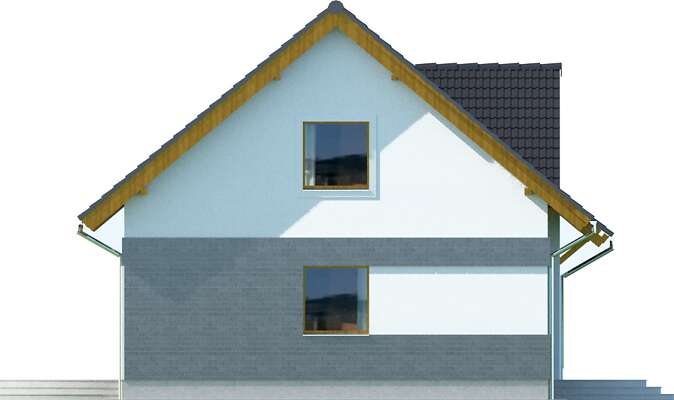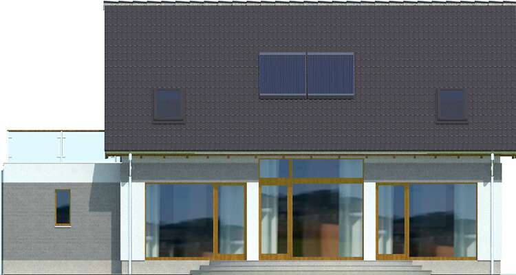Spełnienie marzeń o rodzinnym, ciepłym domu. Prosta bryła o harmonijnych proporcjach, nawiązuje formą do archetypu domu. Poprzez zdecydowane dachy i przyjazny detal, doskonale wpisuje się w rodzimy krajobraz. Sercem jego jest przestronny pokój dzienny, z antresolą poddasza. Kuchnia jest wygodnie usytuowana, duża i jasna. Posiada użyteczne pomieszczenie gospodarcze i wydzielone miejsce na rodzinny stół. Gabinet może być z powodzeniem użytkowany jako pokój gościnny. Poddasze tworzy przestrzeń sypialni. Jest tu wygodny pokój rodziców wraz z garderobą, efektowna łazienka i królestwo dzieci: dwa ustawne pokoje, powiększane w lecie o taras nad garażem. Ten nowoczesny dom zaprojektowany w standardzie domu pasywnego jest wyposażony w kompaktowe urządzenie z pompą ciepła i rekuperacją oraz gruntowy wymiennik ciepła, przez co uzyskuje się bardzo przyjazny klimat domu (wskazany dla osób z alergią).