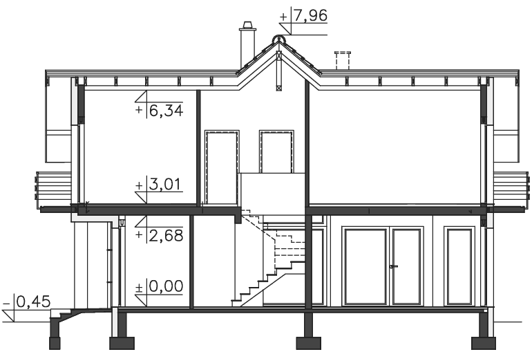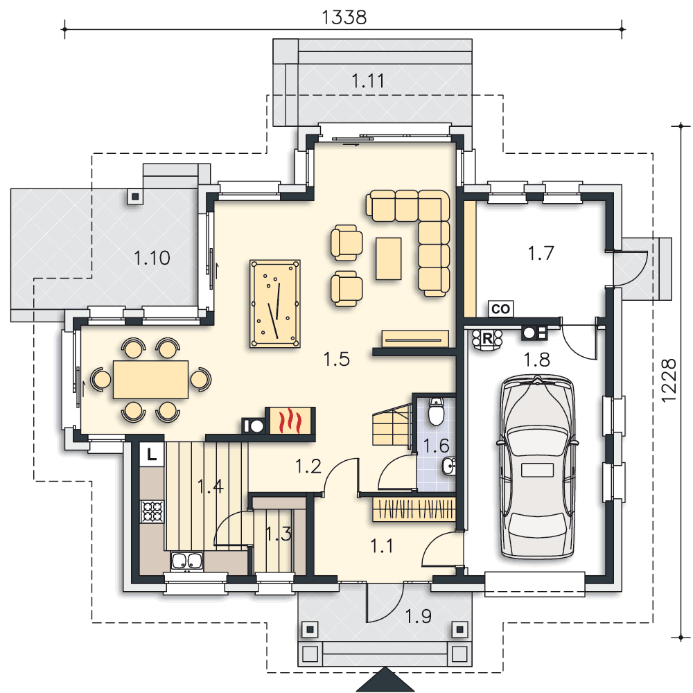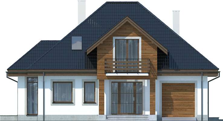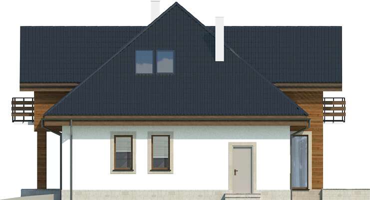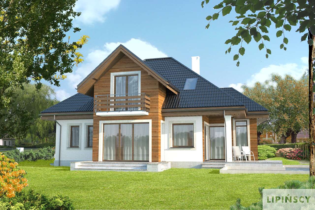 Piękny energooszczędny dom z użytkowym poddaszem, o ciekawej bryle, z dachem wielospadowym. Doskonale doświetloną dużymi oknami strefę dzienną na parterze dominuje piękny salon z kominkiem i częścią wypoczynkowo-rekreacyjną. Z salonem graniczy otwarta kuchnia, obok której znajduje się spiżarnia. Z garażu można przejść bezpośrednio do domu i do kotłowni z wyjściem na zewnątrz budynku. Na poddaszu, w strefie prywatnej zlokalizowano aż cztery sypialnie. Trzy mniejsze mogą służyć jako pokoje dziecinne, natomiast większa – z osobną garderobą i niezależnym wejściem do dużej łazienki – będzie doskonałym azylem dla rodziców.