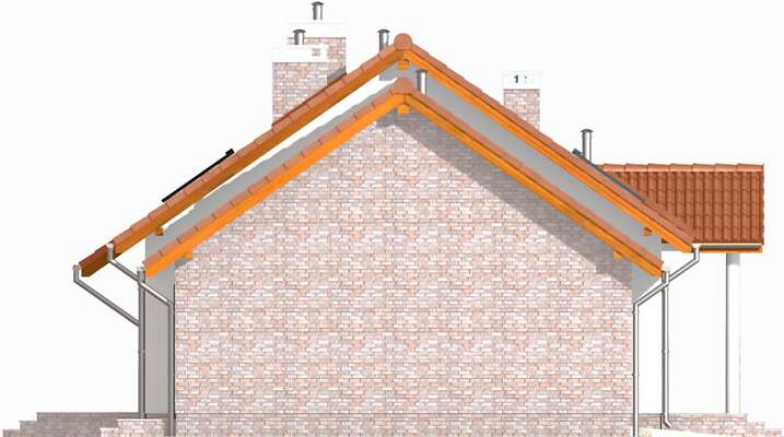 Projekt znalazłam w katalogu Ciepłe Domy. Spełnia on moje wymagania. Jest nieduży, w pierwszym etapie można wykończyć tylko parter i z czasem, jeśli będzie taka potrzeba, dokończyć poddasze. Projekt wyróżnia alternatywne ogrzewanie kotłem na paliwo stałe, bo do działki nie jest doprowadzony gaz. Stosunkowo niski koszt wybudowania domu i możliwość powiększenia powierzchni mieszkaniowej o poddasze, jeśli będzie taka potrzeba rodziny.