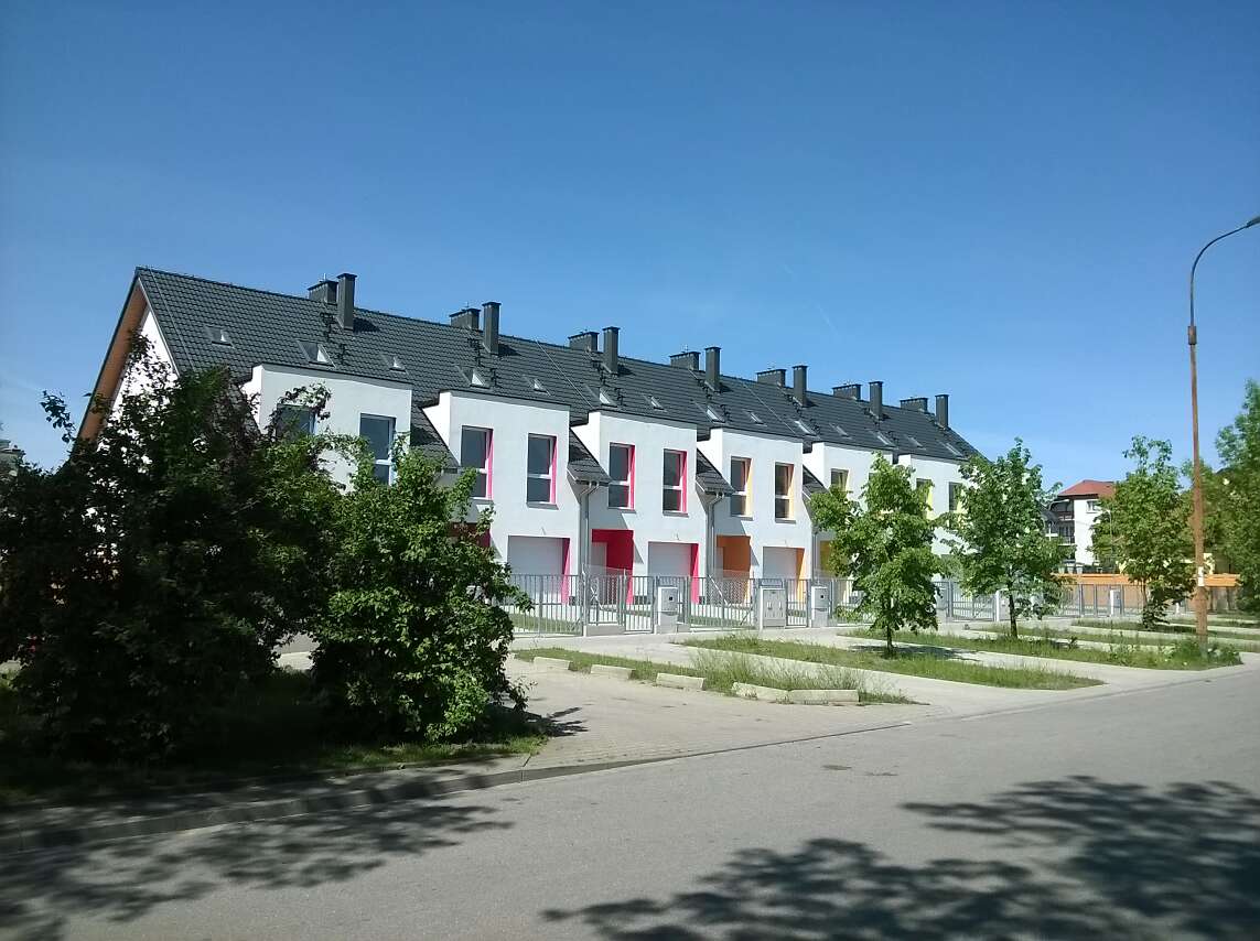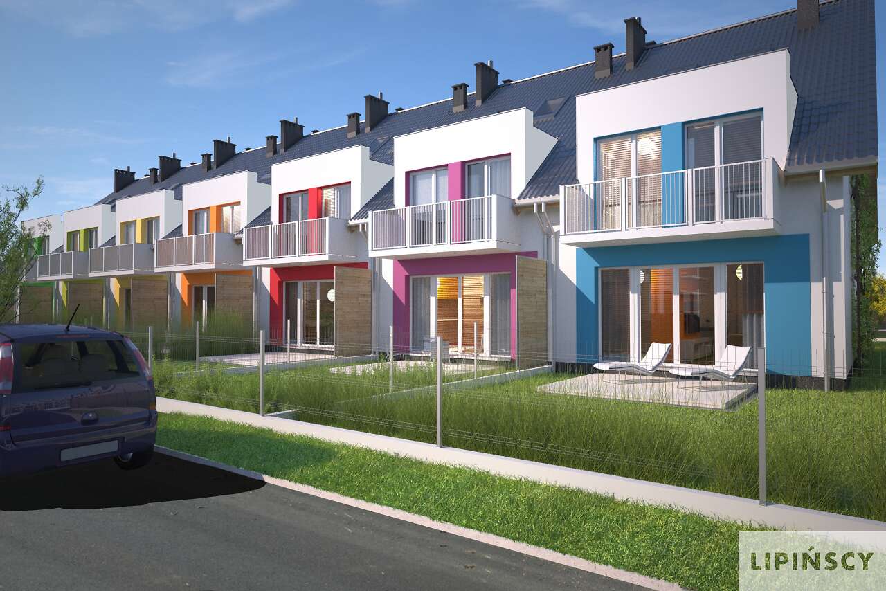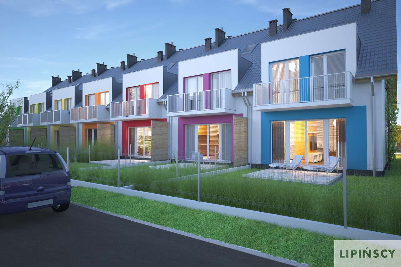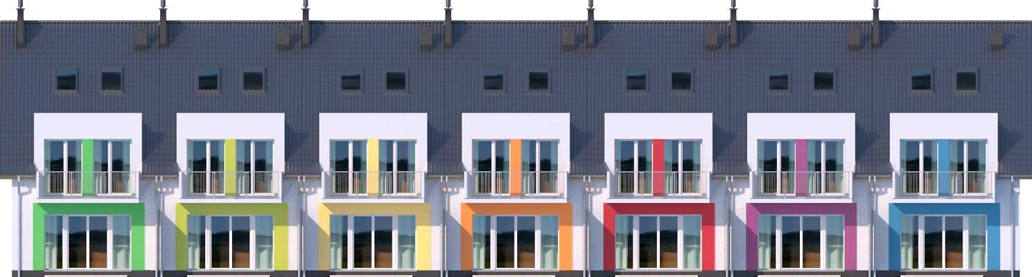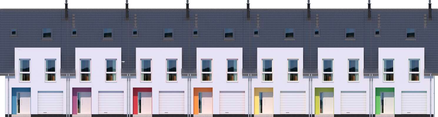 Projekt domu Edmonton z zabudowie szeregowej to prosty układ konstrukcyjny, znacznie ograniczający koszty budowy, a jednocześnie tworzący miły dla oka rytm lukarn. Lekką stylistykę podkreśla zastosowanie różnych kolorów do każdego domku, co nawiązuje do szeregowych osiedli Holandii, czy Belgii. Układ funkcjonalny to nowoczesne wnętrza, gdzie na parterze znajduje się część dzienna, sypialnie na poddaszu, a na najwyższej kondygnacji otwarte studio do zagospodarowania wedle potrzeby mieszkańców. Plusem jest także wbudowany garaż z przejściem do domu. Dostępna jest wersja z kominkiem.