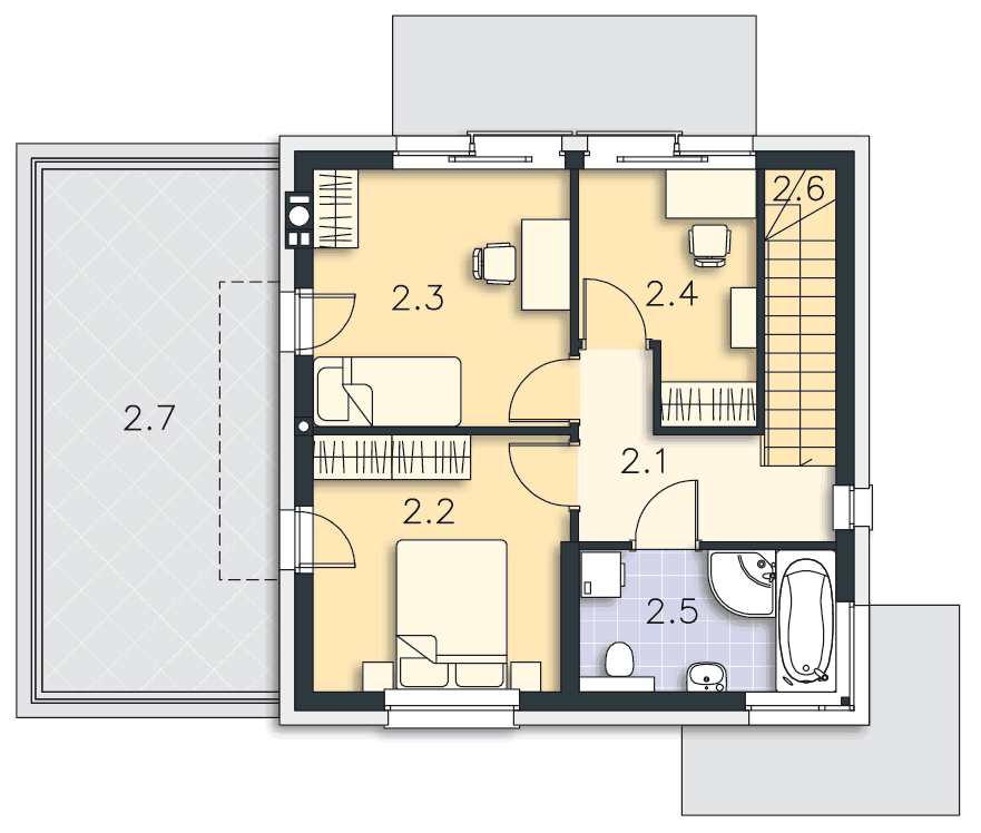 Hej, słyszałem o takim programie dopłat- dom dla młodych. Ten metrażowo pasuje więc super! fajny rozkład pomieszczeń. My nie potrzebujemy gabinetu. Czy jest możliwe połączenie 2.3 i 2.4 i zrobienie z nich dużej sypialni z garderobą? Powinno się zmieścić. Co myślicie?