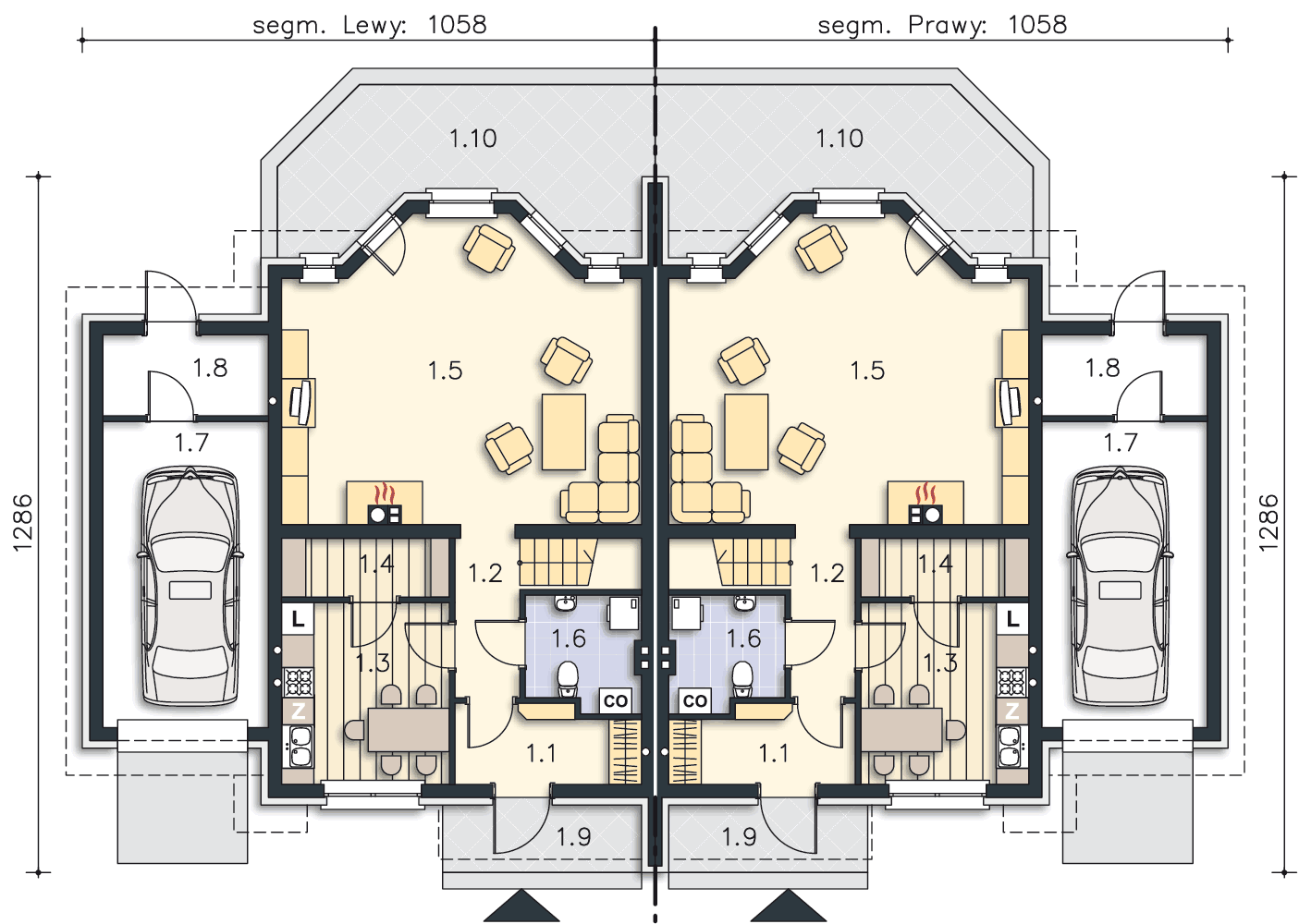 | Kubatura | 2x643,80m2 |