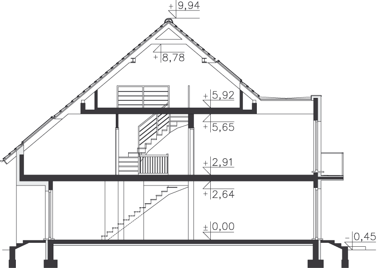 Dach - tradycyjna więźba ciesielska, pokrycie: dachówka cementowa lub ceramiczna