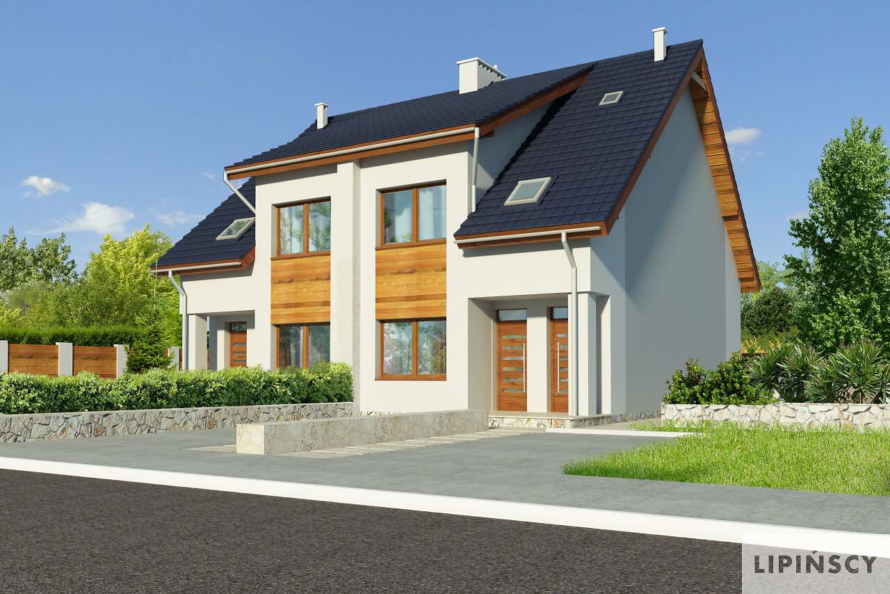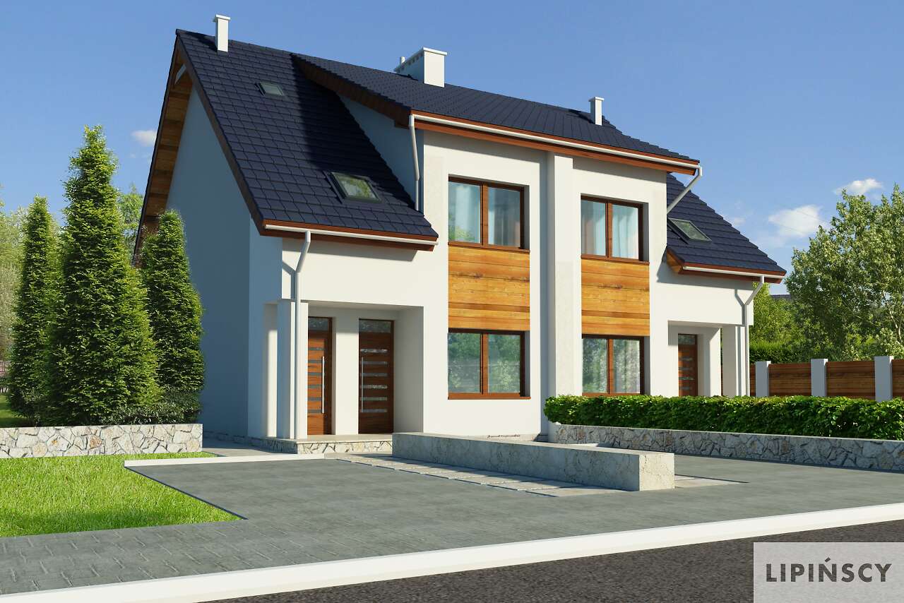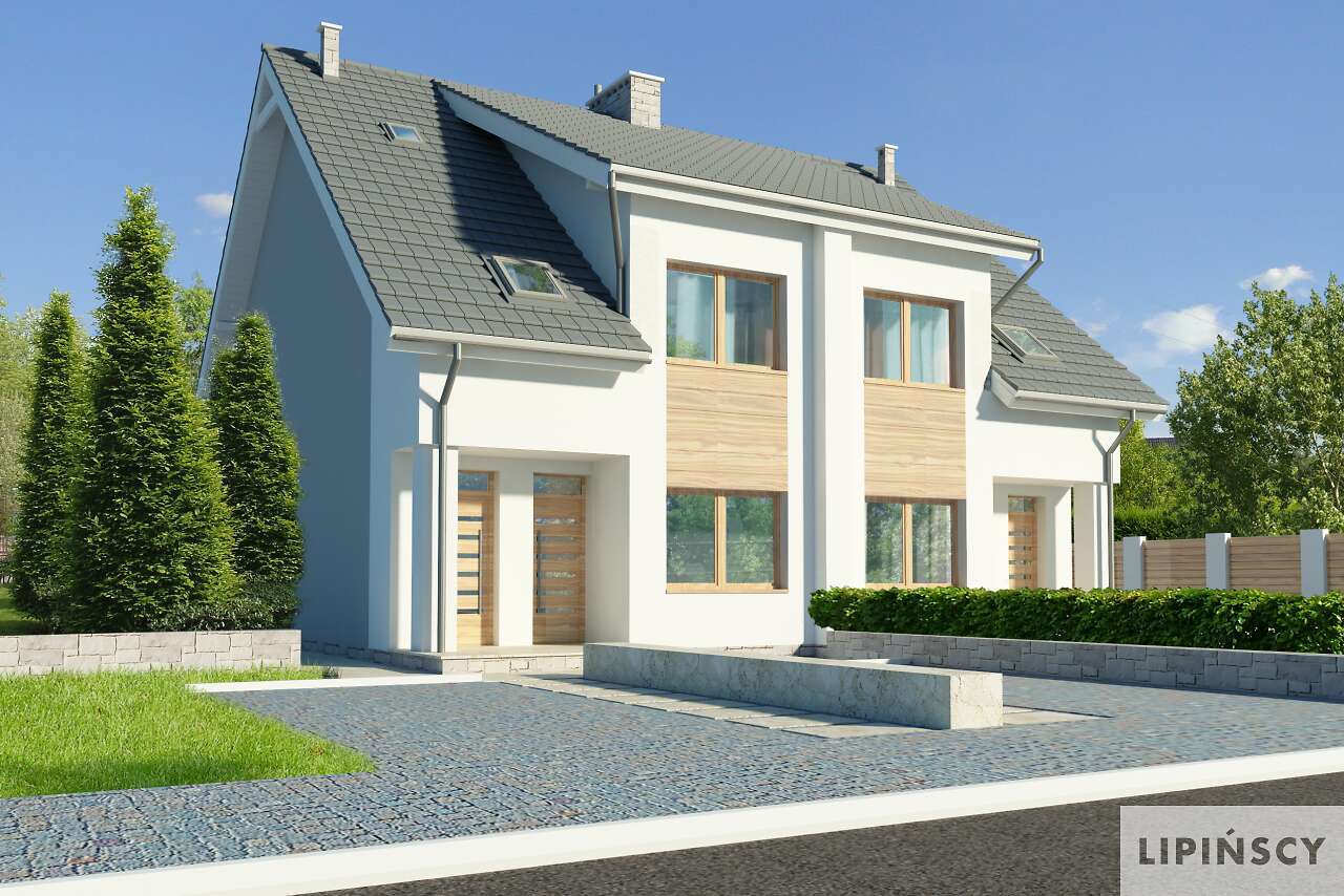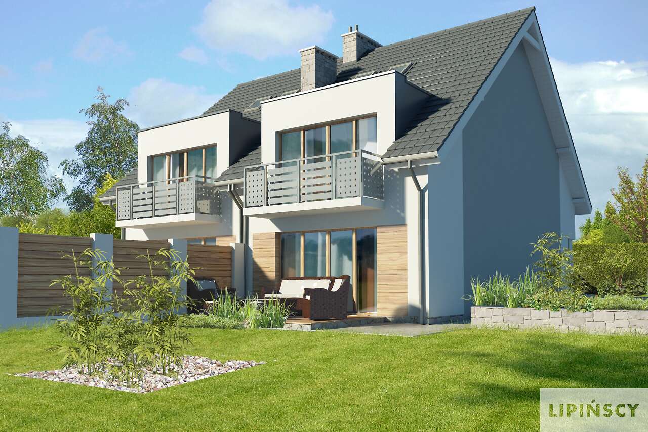 Energooszczędny dom jednorodzinny, w zabudowie bliźniaczej, z możliwością wydzielenia dwóch mieszkań. Pierwsze z nich, mniejsze – na parterze może należeć do seniorów, drugie zaś – na pierwszym i drugim piętrze (poddasze) – może być użytkowane przez większą rodzinę. Dzięki zastosowaniu dużych lukarn udało się zminimalizować skosy i uzyskać więcej powierzchni użytkowej. Nowoczesna architektura budynku sprawia, że projekt będzie się sprawdzał, zarówno w zabudowie szeregowej, jak i jako budynek bliźniaczy czy wolnostojący.