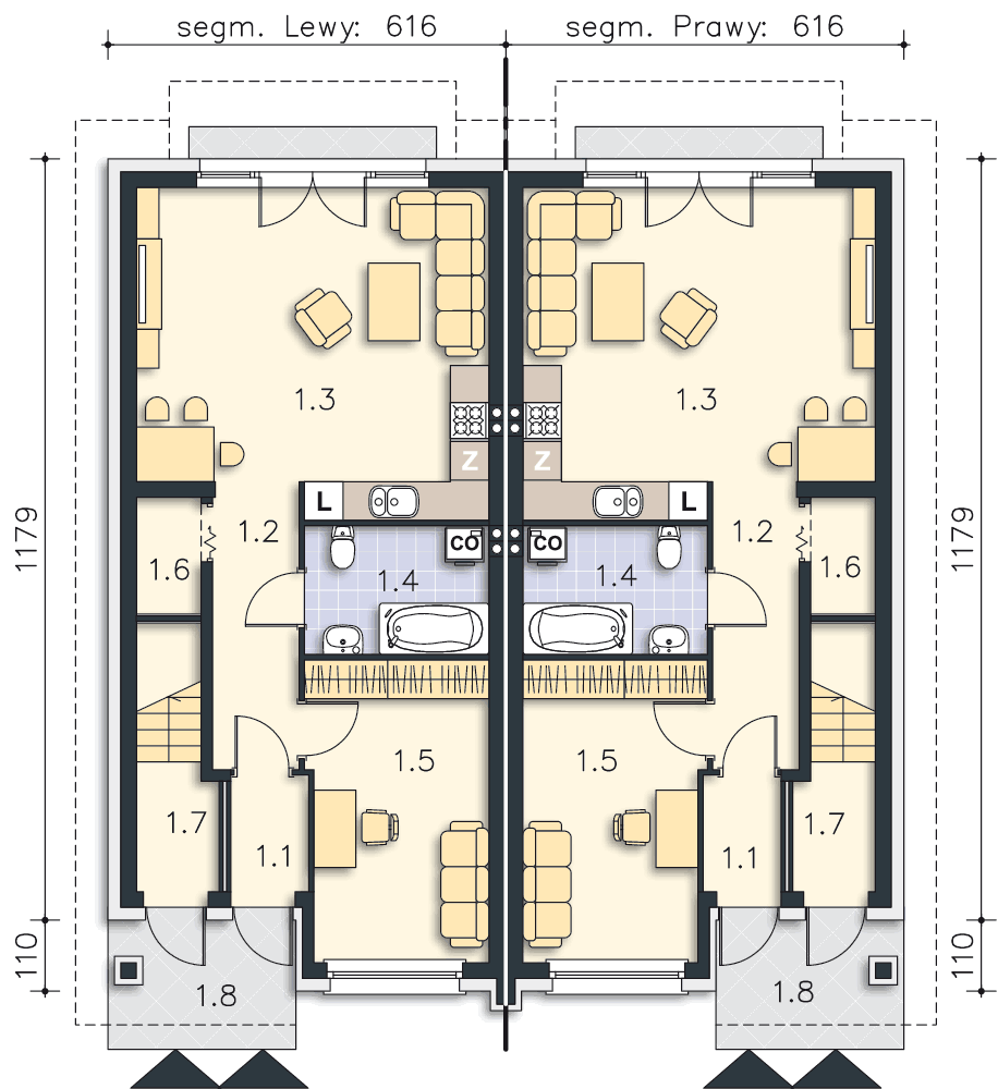 | Powierzchnia zabudowy | 2x79,48m2 |