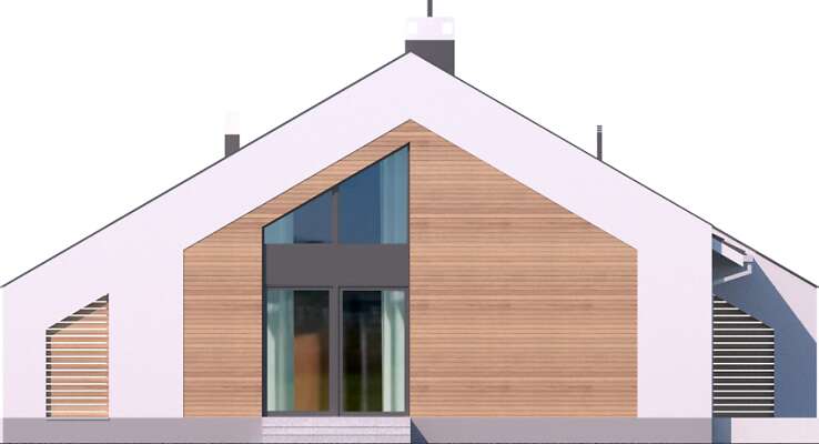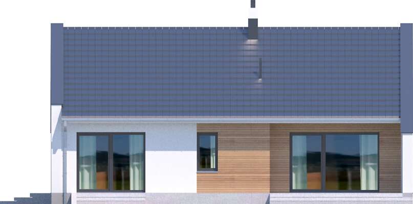 Dom parterowy, o zwracającej uwagę bryle – idealna propozycja dla inwestorów szukających swojego wygodnego, przytulnego, ale wyróżniającego się miejsca na ziemi. Do wnętrza zaprasza ciekawie zaaranżowana strefa wejściowa, zlokalizowana w niewielkim podcieniu, który chroni przed deszczem. W podobnym stylu zaprojektowano również taras od strony ogrodu, gdzie z przyjemnością można się zrelaksować. Centrum domu stanowi duży salon z kominkiem i otwarta na niego kuchnia. Strefę prywatną podzielono pomiędzy dwie wygodne sypialnie i komfortową łazienkę. W domu przewidziano także przydatne pomieszczenie gospodarcze, w którym znajduje się kocioł gazowy. Drewniane elementy elewacji ozdabiają bryłę i podkreślają jej charakterystyczne cechy.