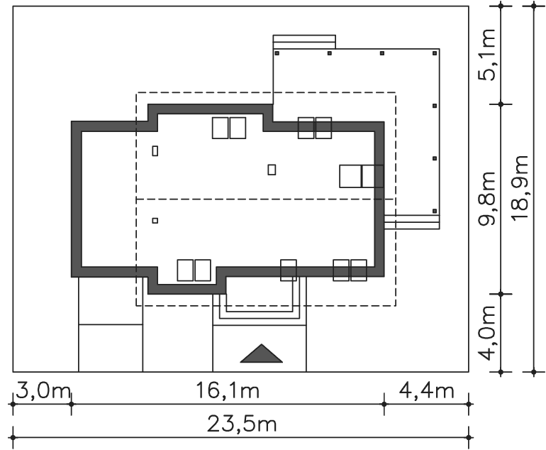 | Min. szerokość działki | 23,50m x 18,90m |