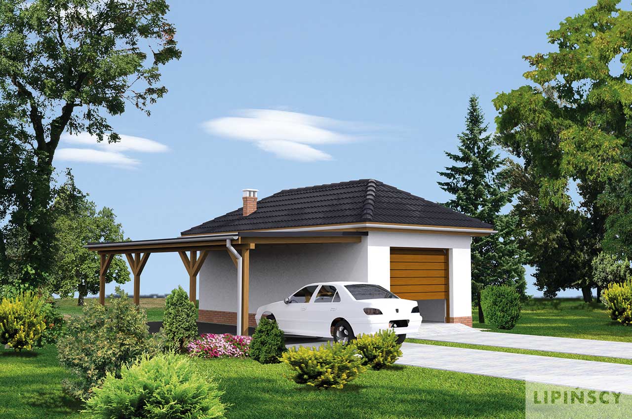Budynek gospodarczy, łączący w sobie funkcję garażu i pomieszczenia kuchenno – wypoczynkowego, w którym można zlokalizować biuro. Doskonała propozycja dla osób, szukających niewielkiego budynku do celów usługowych, lub rozważających budowę takiego garażu np. na działce i wykorzystania go także jako miejsce do rekreacji.