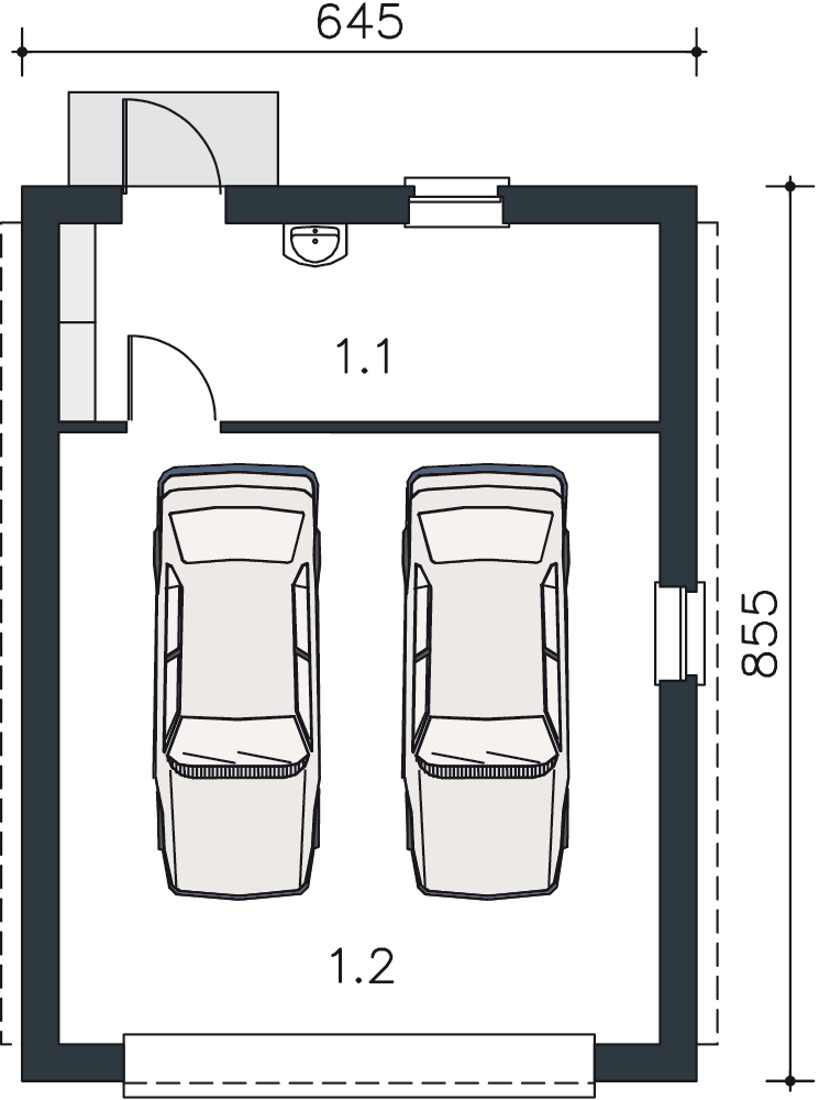 Garaż wolnostojący, dwustanowiskowy z pomieszczeniem gospodarczym.