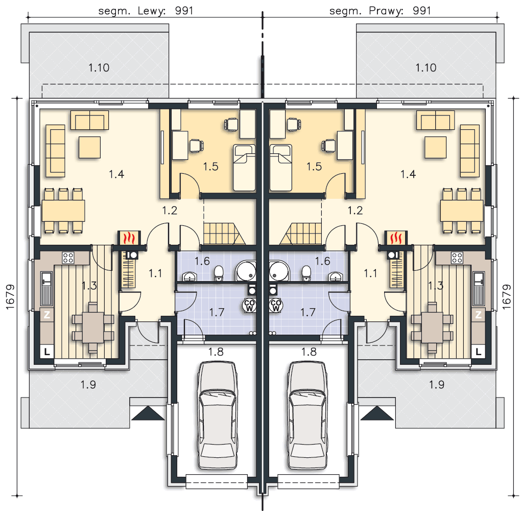 | Powierzchnia zabudowy | 2x131,82m2 |