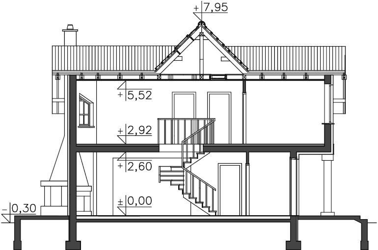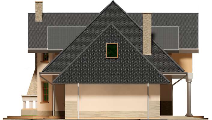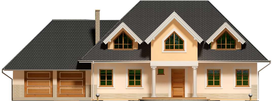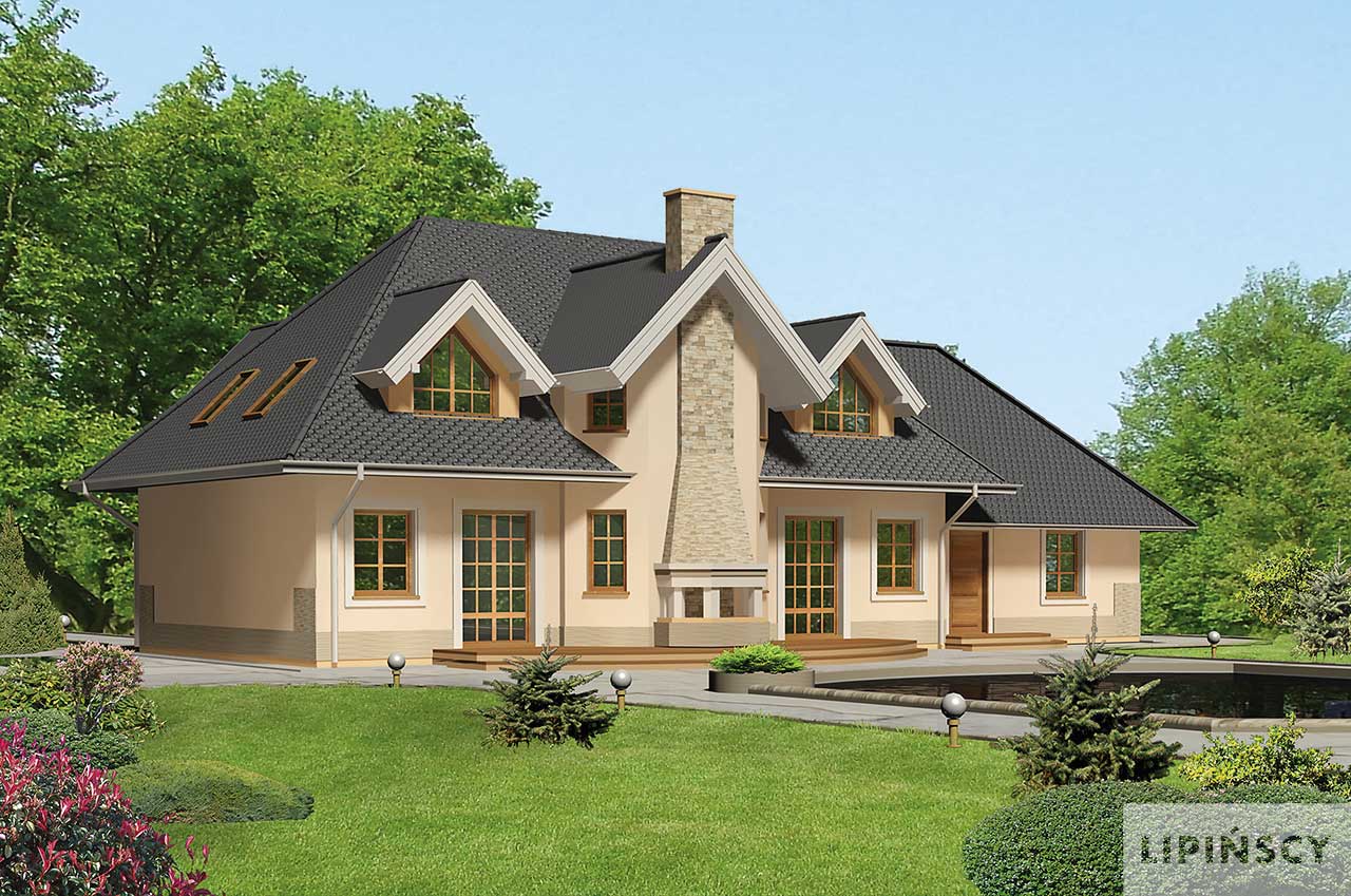 Duży, komfortowy dom z użytkowym poddaszem, utrzymany w stylu nawiązującym do tradycji dworków ziemiańskich. Wnętrza rozplanowane są z rozmachem. Wszystkie pomieszczenia parteru są zaprojektowane tak, aby czuło się tu dużo przestrzeni. Wielospadowy dach góruje nad dolną kondygnacją sprawiając, że dom wygląda dostojnie. Na poddaszu zlokalizowano cztery wygodne sypialnie i wygodną łazienkę. Dodatkowo część holu przeznaczono na zaciszną strefę ogólnodostępną – można tam urządzić na przykład kącik komputerowy lub biblioteczkę. Dwustanowiskowy garaż z przejściem do domu przez pomieszczenie gospodarcze uzupełnia wygodny program funkcjonalny.