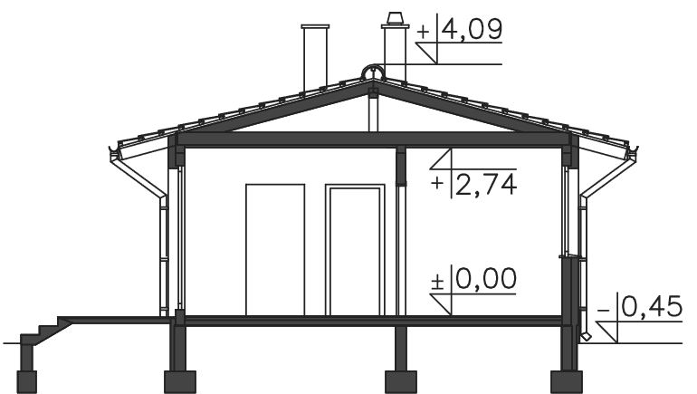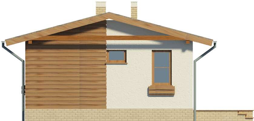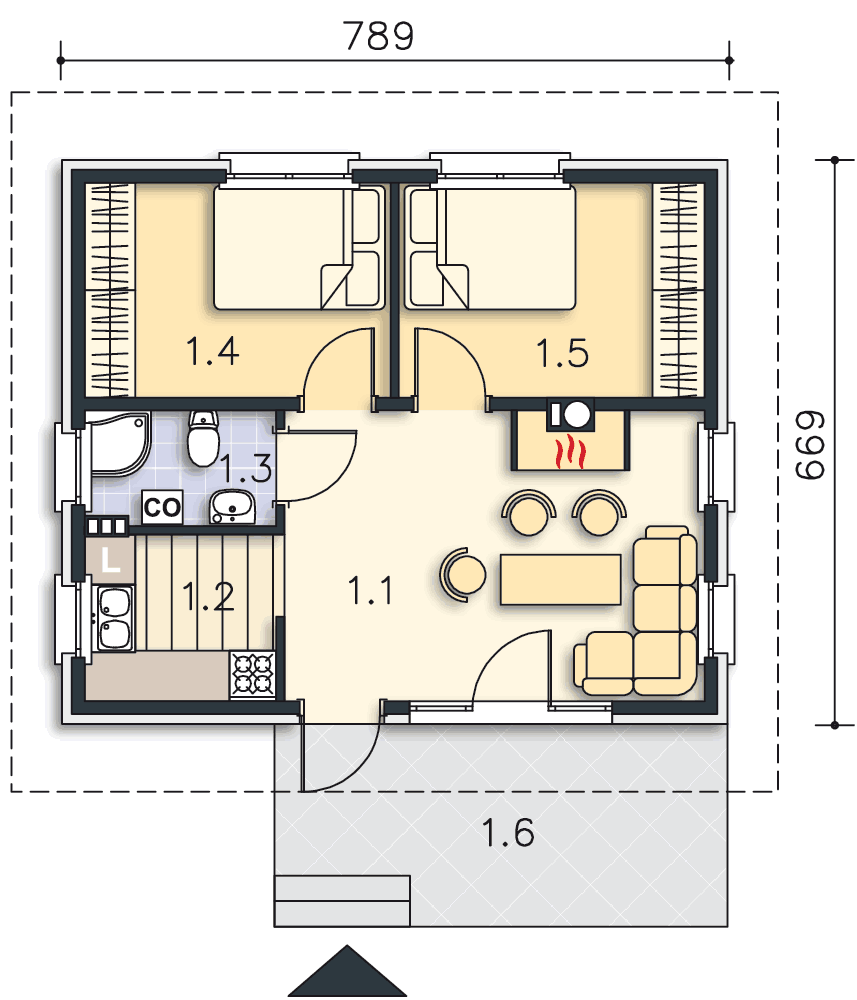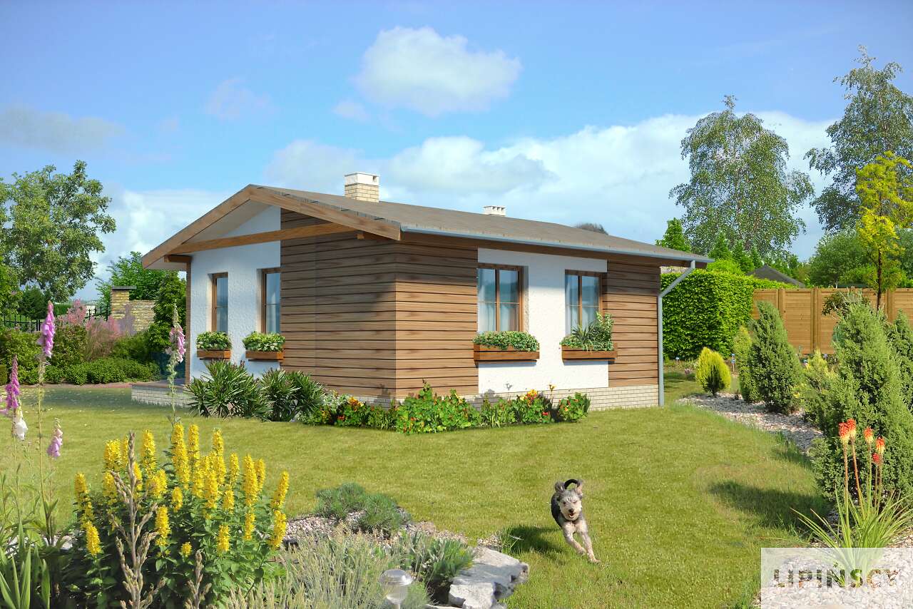 W tym wygodnym domku swobodnie pomieści się czteroosobowa rodzina. Dzięki komfortowi jaki zapewniają dwie sypialnie, łazienka, aneks kuchenny jak i pokój rekreacyjny z kominkiem będę Państwo z chęcią zatrzymywać się w nim na dłuższy odpoczynek z całą rodzinną. Dodatkowo przestronny pokój rekreacyjny może też pełnić funkcję sypialni. Taras pozwoli czerpać Państwu radość z kąpieli słonecznych. Jest to domek funkcjonalny, tani, łatwy i jednocześnie szybki w budowie.