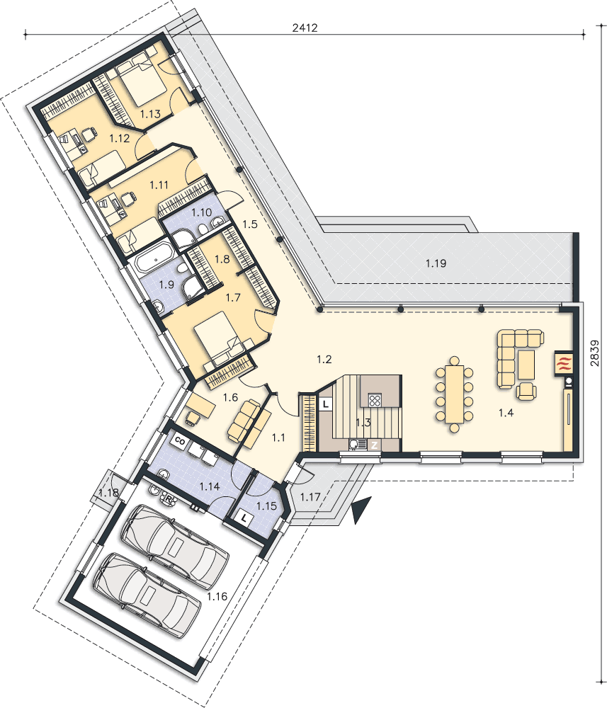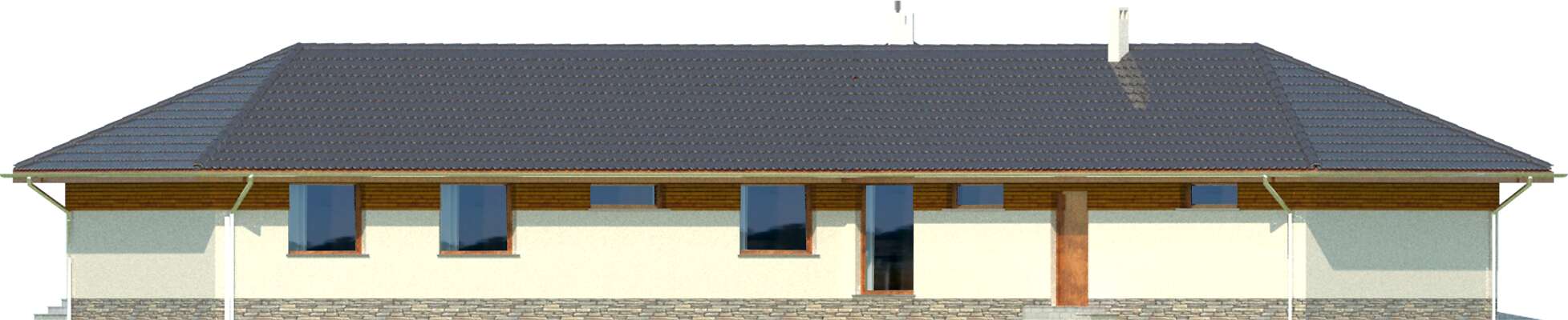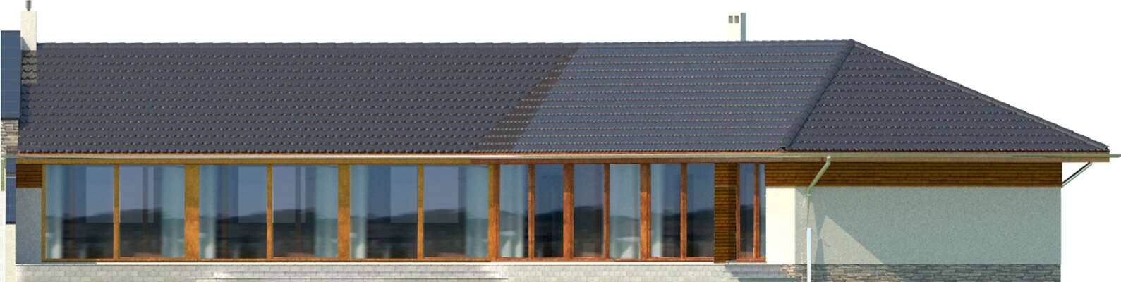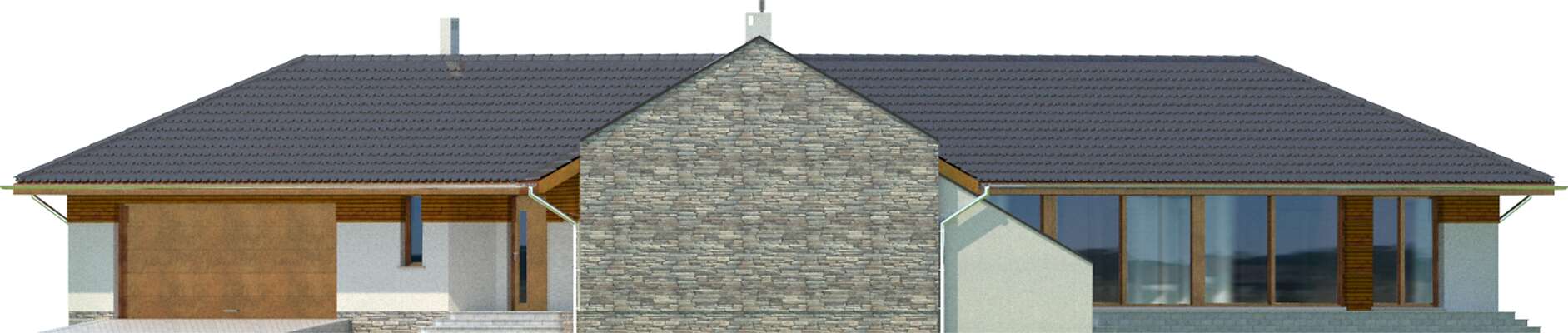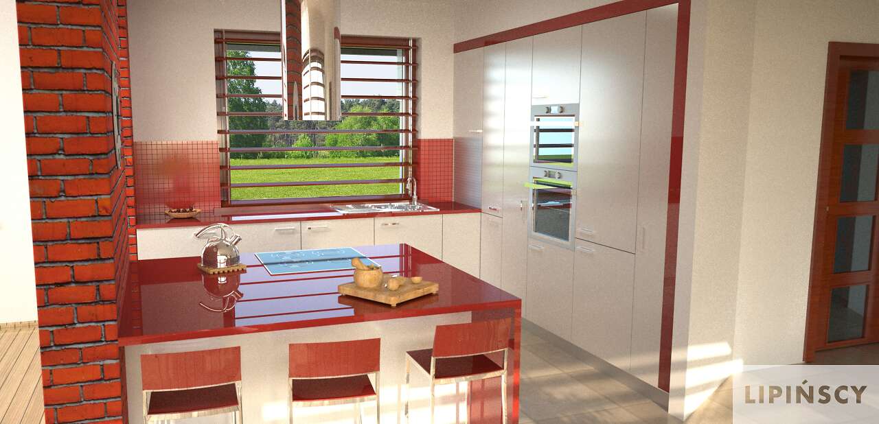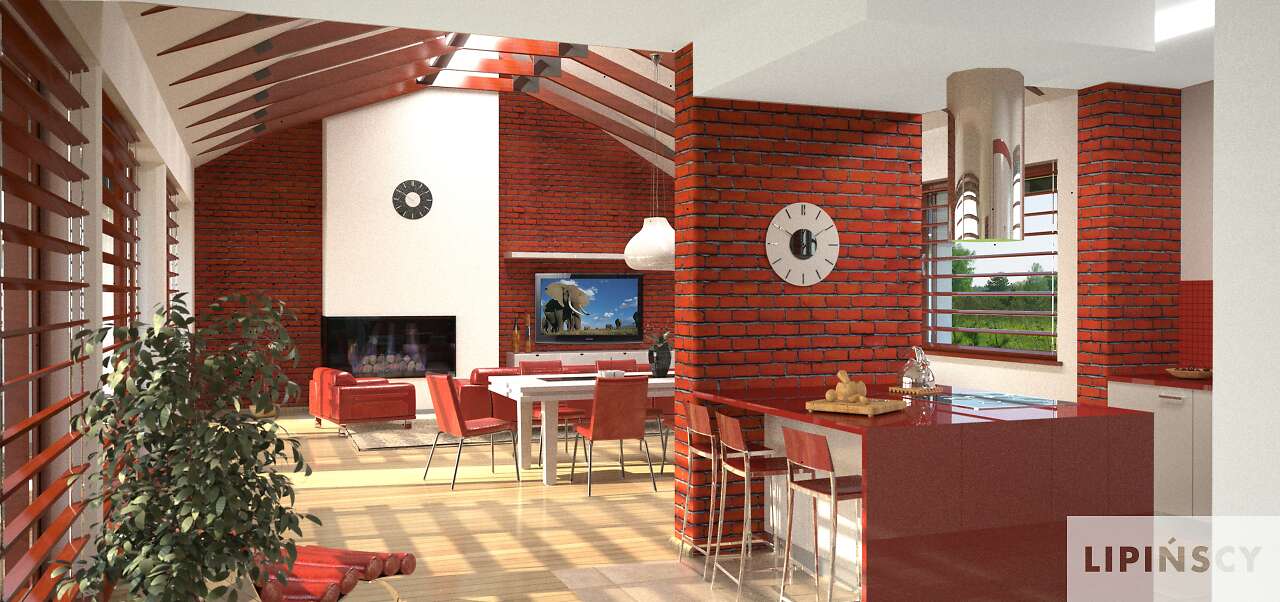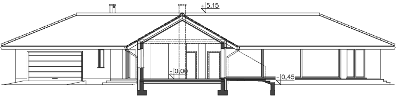 Wyjątkowy dom energooszczędny, o rozłożystej bryle, adresowany do inwestorów ceniących wyjątkowe rozwiązania i bliski kontakt z naturą. Wnętrze podzielono na wspólną strefę dzienną, z otwartą na duży salon kuchnią . Bezpośrednio przy wejściu znajduje się gabinet, w części gospodarczej zaś pralnia, pomieszczenie gospodarcze i garaż na dwa stanowiska. Duży hol można wykorzystać jako wewnętrzny mini ogród. Część nocna, ulokowana w osobnym skrzydle domu to cztery wygodne sypialnie, w tym jedna z własną łazienką i garderobą. Uwagę zwraca przeszklona ściana z widokiem na ogród, która nie tylko jest ozdobą domu, ale także doskonale doświetla wnętrze. W projekcie przewidziano ogrzewanie pompą ciepła.