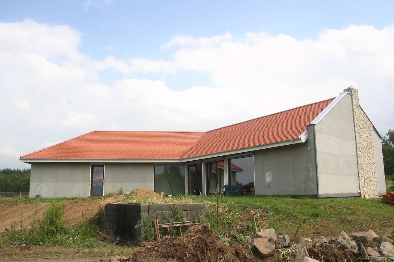 montaż oświetlenia i gniazd elektrycznych - chyba wszystko. Dodam , że dodatkowe prace związane były z budową domu w technologii z barierą termiczną Isomax. Budynek w tej technologii nie potrzebuje tradycyjnej kotłowni na gaz, ekogroszek czy też pompy ciepła. Temperaturę w domu zapewnia słońce i grunt.