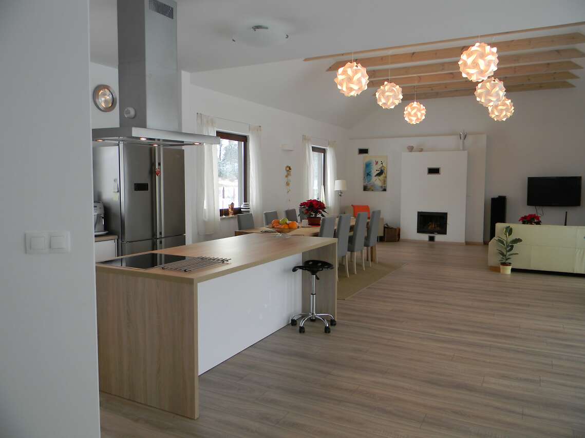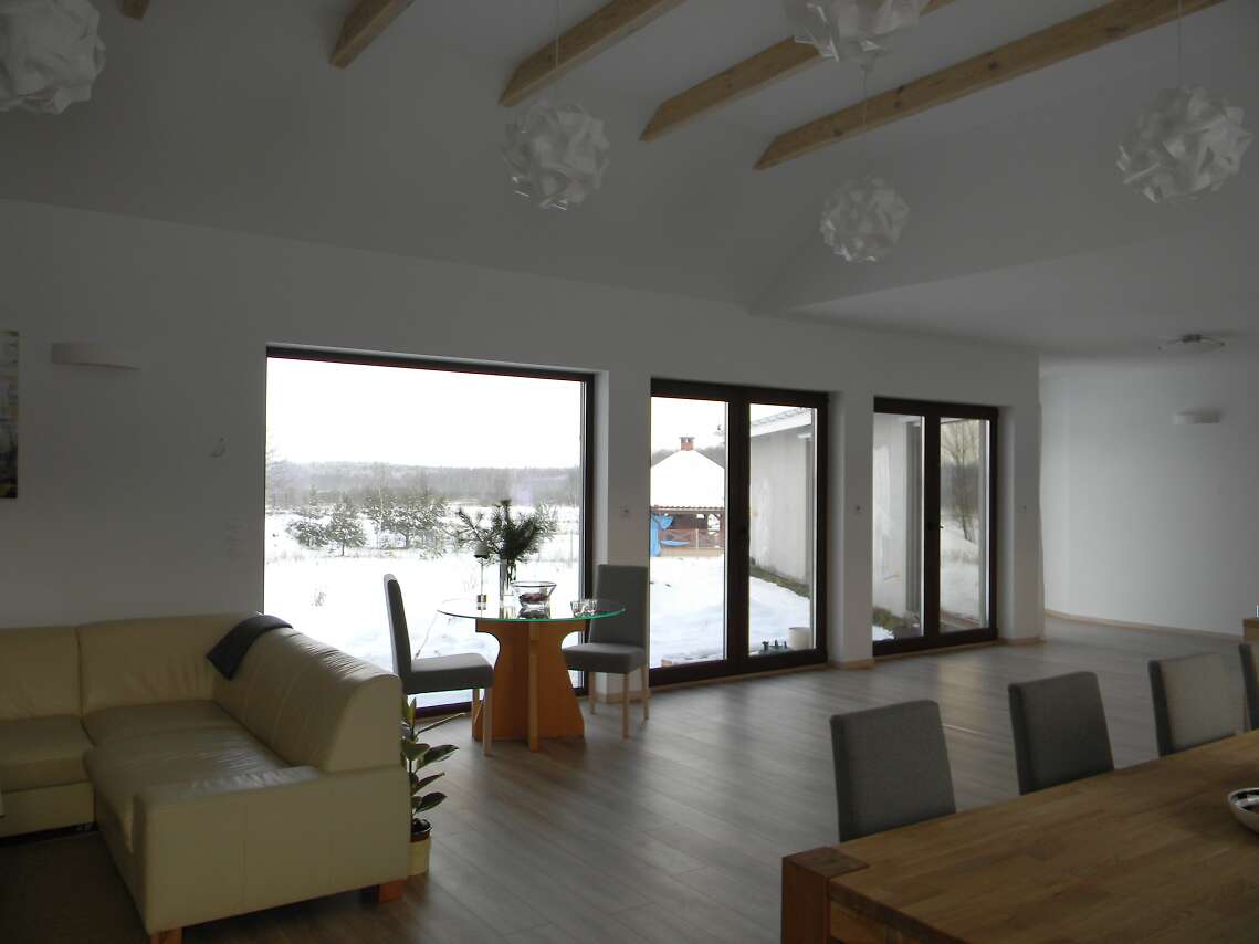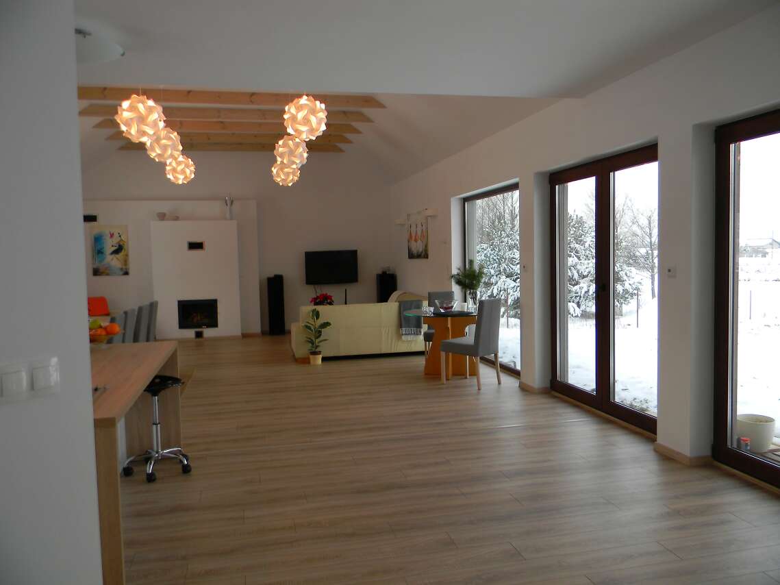 Domek stoi, mieszkamy w nim od grudnia - jest cudowny. Jeżeli chodzi o koszty budowy to są spore... fakt, że używaliśmy najlepszych materiałów ponieważ dom ma być na lata - trzeba liczyć się z kosztem ok. 1mln złotych (okna, oczyszczalnia ścieków, rekuperacja, pompa ciepła z instalacją to jest to co generuje największe koszta)