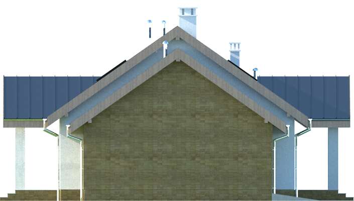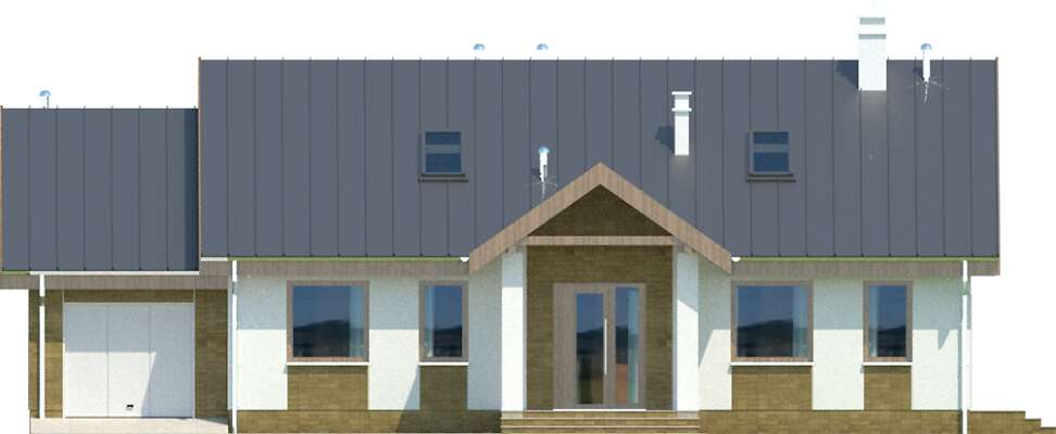 Wersja lubianego projektu Haga LMB47, w której garaż przeniesiony został na stronę sypialni. Dzięki temu kotłownia zyskała niezależne wyjście na zewnątrz, co umożliwia wstawienie do niej pieca na opał stały. Mieszkańcy mają do dyspozycji kuchnię z miejscem na stół, salon z kominkiem i trzy ustawne sypialnie. W salonie można umiejscowić schody na poddasze i zaadaptować je w miarę potrzeby na przestrzeń użytkową. Niewielki zadaszony taras to doskonałe miejsce na wypoczynek na świeżym powietrzu niezależnie od pogody.