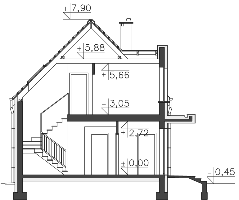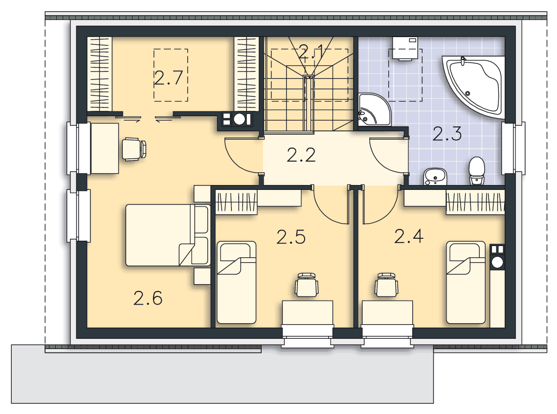 Bardziej odpowiednia będzie wówczas wersja lustrzanego odbicia - można ją znaleźć powyżej pod nazwa projektu. Można podnieść ściankę kolankowa i tym samym zwiększyć powierzchnię użytkową.